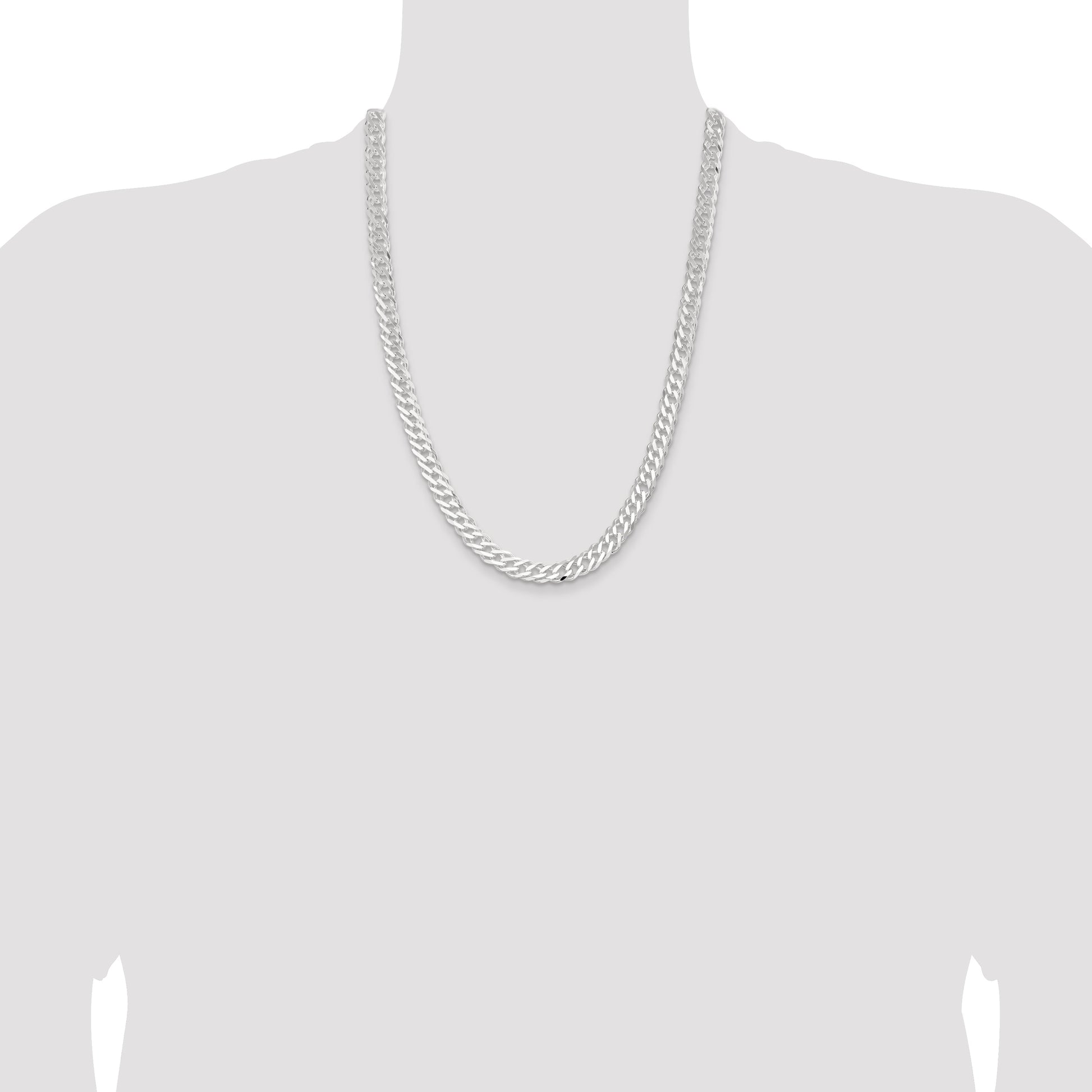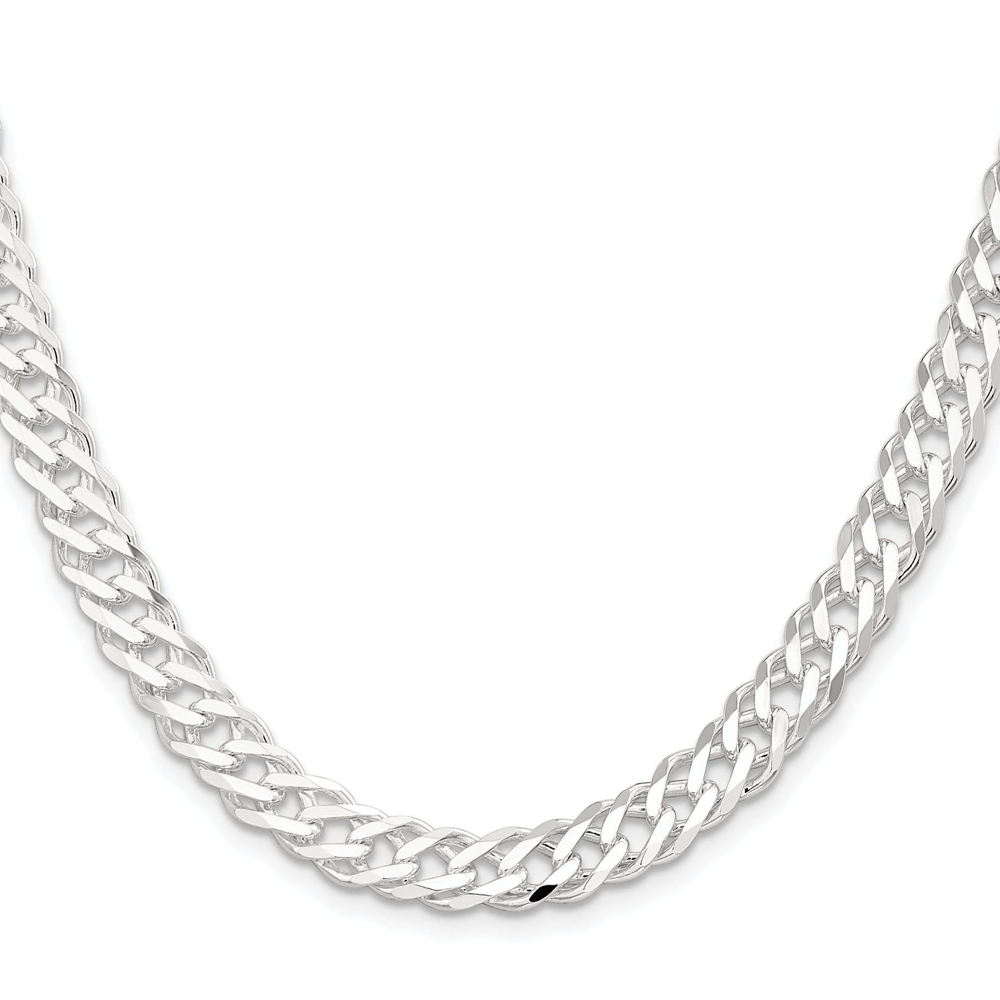 The 24 Inch Sterling Silver 7.75mm 6 Side D/C Flat Double Curb Chain is a striking piece of jewelry that effortlessly completes any look. Crafted from 925 sterling silver, this men's chain is polished to perfection. Its sleek, flat profile boasts a substantial 7.75 mm width. The diamond-cut texture adds a touch of elegance, enhancing its visual appeal. It features a strong lobster clasp ensuring secure wear. The anti-tarnish coating keeps it shining bright. Whether for a night out or everyday wear, this chain offers timeless style. Perfect as a gift or a personal indulgence, the 24 Inch Sterling Silver 6 Side D/C Flat Double Curb Chain remains a timeless treasure in any collection.