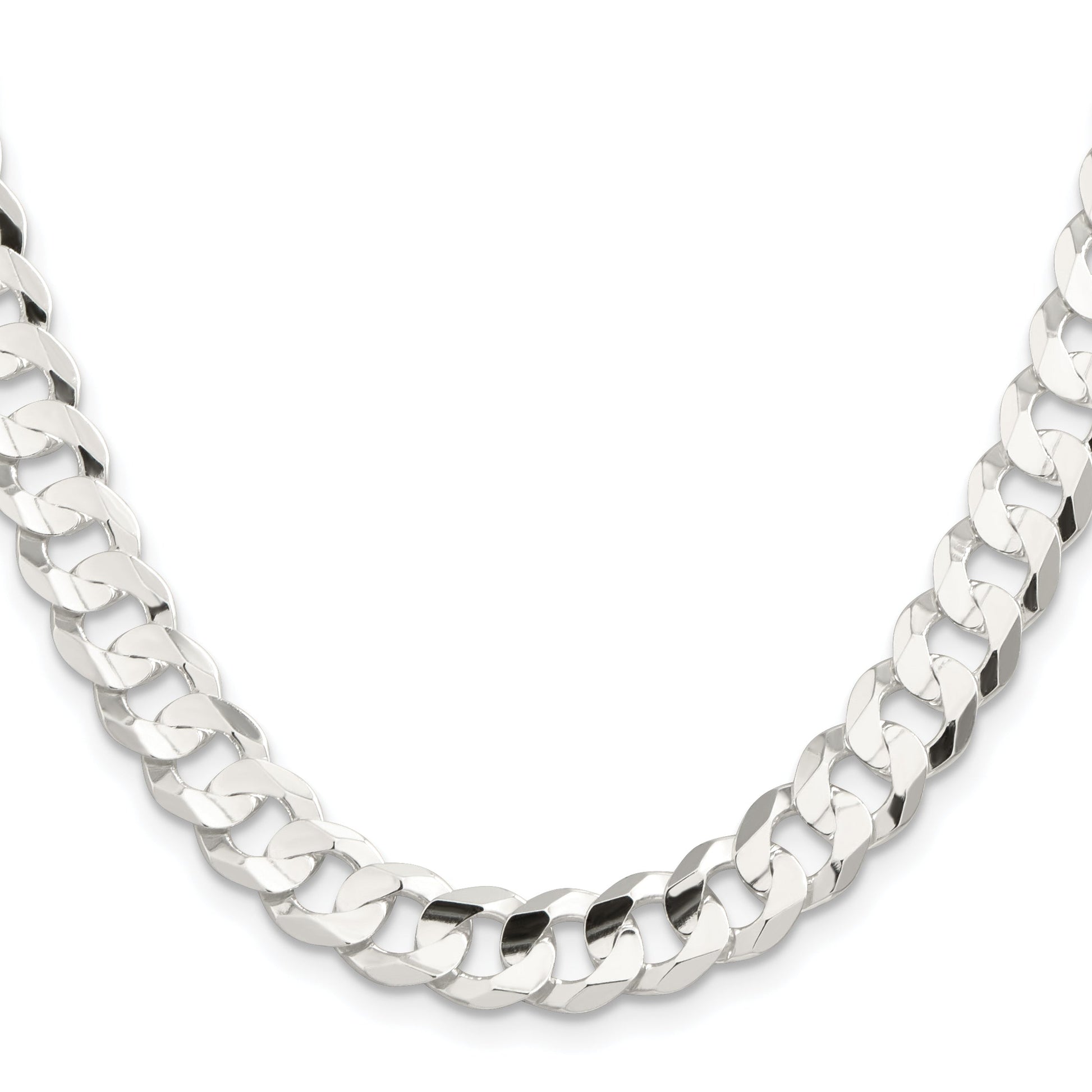 The 24 Inch Sterling Silver 9.75mm Concave Beveled Curb Chain blends modern design and timeless charm. Crafted from polished 925 sterling silver, this men's necklace shines with its mirror-like finish. The chain, measuring 24 inches in length, showcases a substantial 9.75mm width that exudes confidence and style. The concave profile and beveled edges provide a unique detail that stands out, while the anti-tarnish coating ensures lasting brilliance. A lobster clasp secures this piece effortlessly. The 24 Inch Sterling Silver 9.75mm Concave Beveled Curb Chain is a must-have for any man seeking a classic yet bold statement piece.
