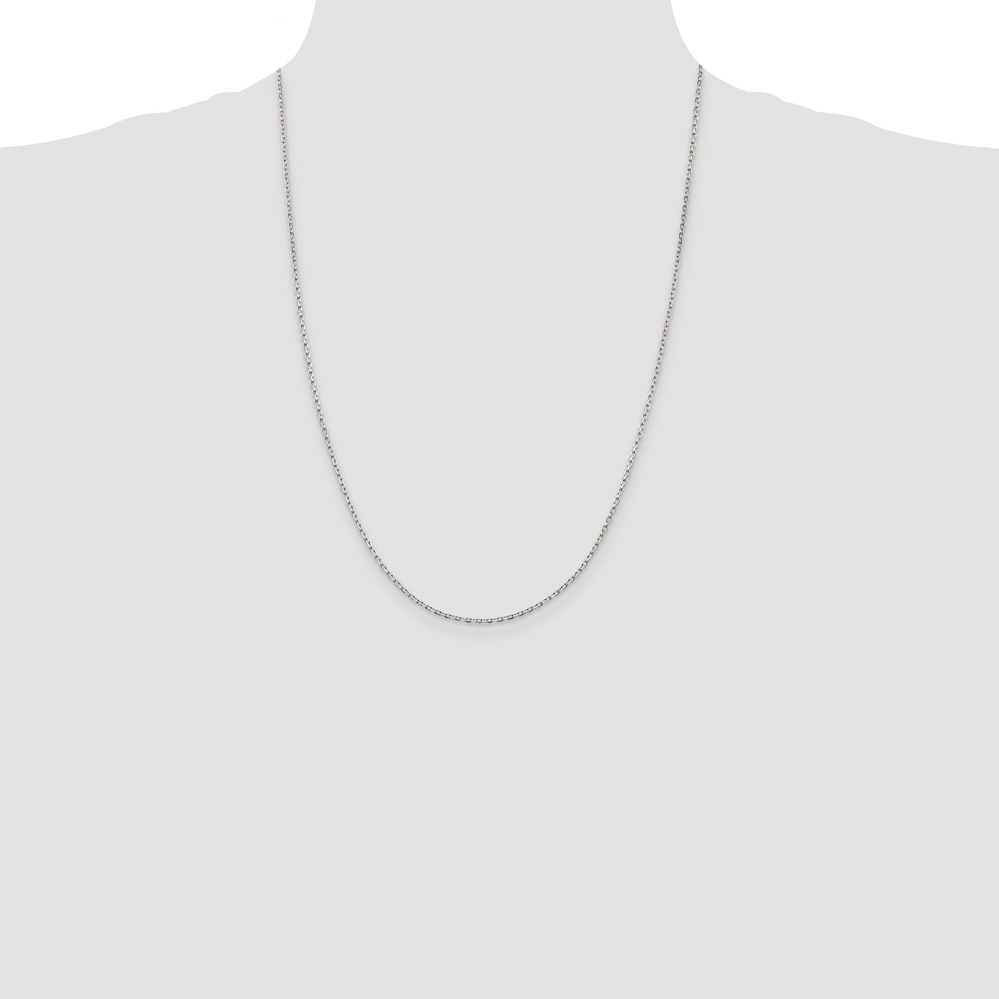 Embrace elegance with our 24 Inch Sterling Silver Rhodium-Plated 1.5mm Beveled Oval Cable Chain. Crafted from high-purity 925 sterling silver, this polished necklace shines with a radiant silver tone finish. Its sturdy 1.5mm chain showcases exquisite beveled edges, adding a touch of sophistication to any look. The dependable lobster clasp ensures secure wear, making it the perfect choice for everyday elegance or special occasions. Designed specifically for women, this solid piece of jewelry effortlessly complements a range of styles. Elevate your collection with our stylish 24 Inch Sterling Silver Rhodium-Plated 1.5mm Beveled Oval Cable Chain.