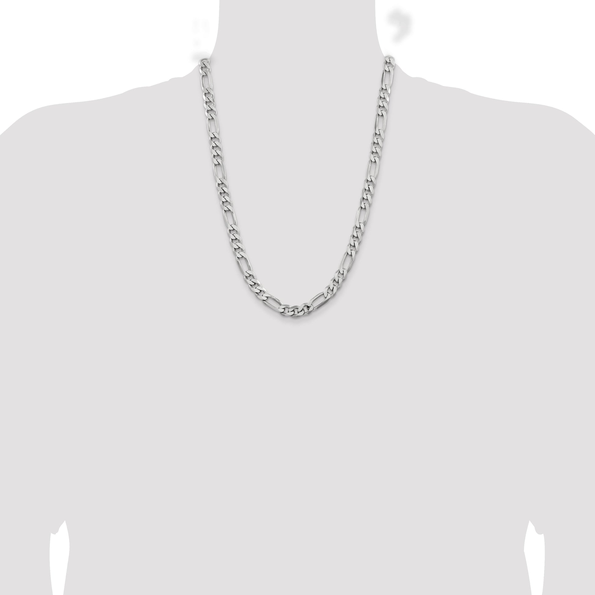 Introducing the 24 Inch Sterling Silver Rhodium-Plated 7.75mm Figaro Chain. This standout piece keeps it real with solid sterling silver. Polished to shine, it sports a sleek 24-inch length that adds an edge to any look. It features the distinctive Figaro style, with 7.75mm links that make a statement. The rhodium plating offers a silver tone that resists tarnish. A durable lobster clasp ensures it's secure and hassle-free to wear. Crafted precisely by machine, this necklace will complete any outfit. Elevate your style game with the 24 Inch Sterling Silver Rhodium-Plated 7.75mm Figaro Chain.