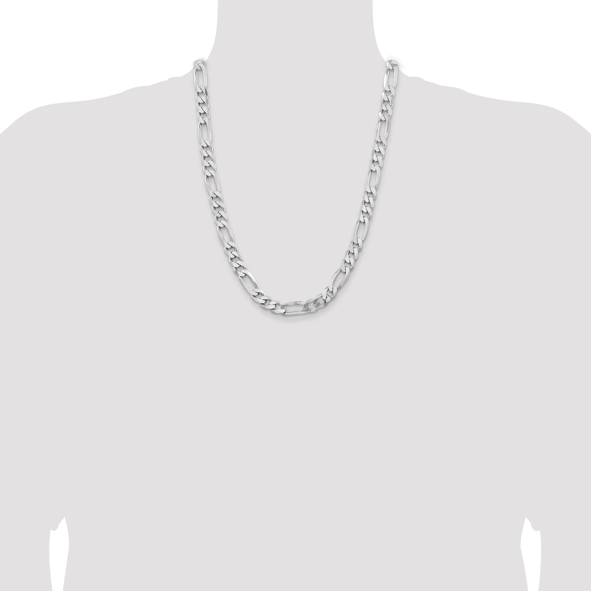The 24 Inch Sterling Silver Rhodium-Plated 9mm Figaro Chain brings timeless elegance to any ensemble. Crafted with 925 sterling silver, this piece showcases a polished finish and a durable Figaro design. At a generous 24 inches in length, this necklace rests gracefully on the chest, making a bold statement. The 9mm width ensures it stands out, while a secure lobster clasp keeps it safe. Rhodium plating adds a brilliant silver tone that resists tarnishing. Perfect for today's gentleman who appreciates fine details, the 24 Inch Sterling Silver Rhodium-Plated 9mm Figaro Chain enhances any look with sophistication and style.