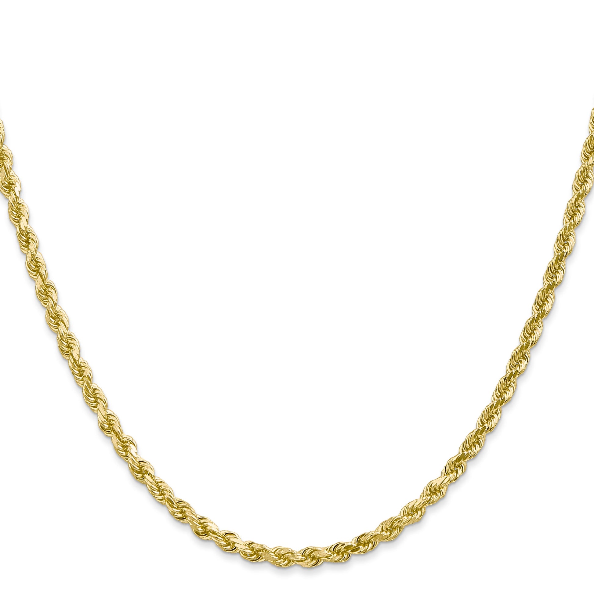 Experience the elegance of our 26 Inch 10K 3mm Diamond-Cut Rope Chain. Crafted from premium 10K yellow gold, this polished necklace exudes sophistication with its intricate diamond-cut texture. The 3mm width adds a perfect touch of boldness, while the 26-inch length ensures it hangs gracefully. The sturdy lobster clasp guarantees a secure fit. This solid rope chain is not just a piece of jewelry; it's a statement of style. Elevate your accessory game with our 26 Inch 10K 3mm Diamond-Cut Rope Chain and shine every day.
