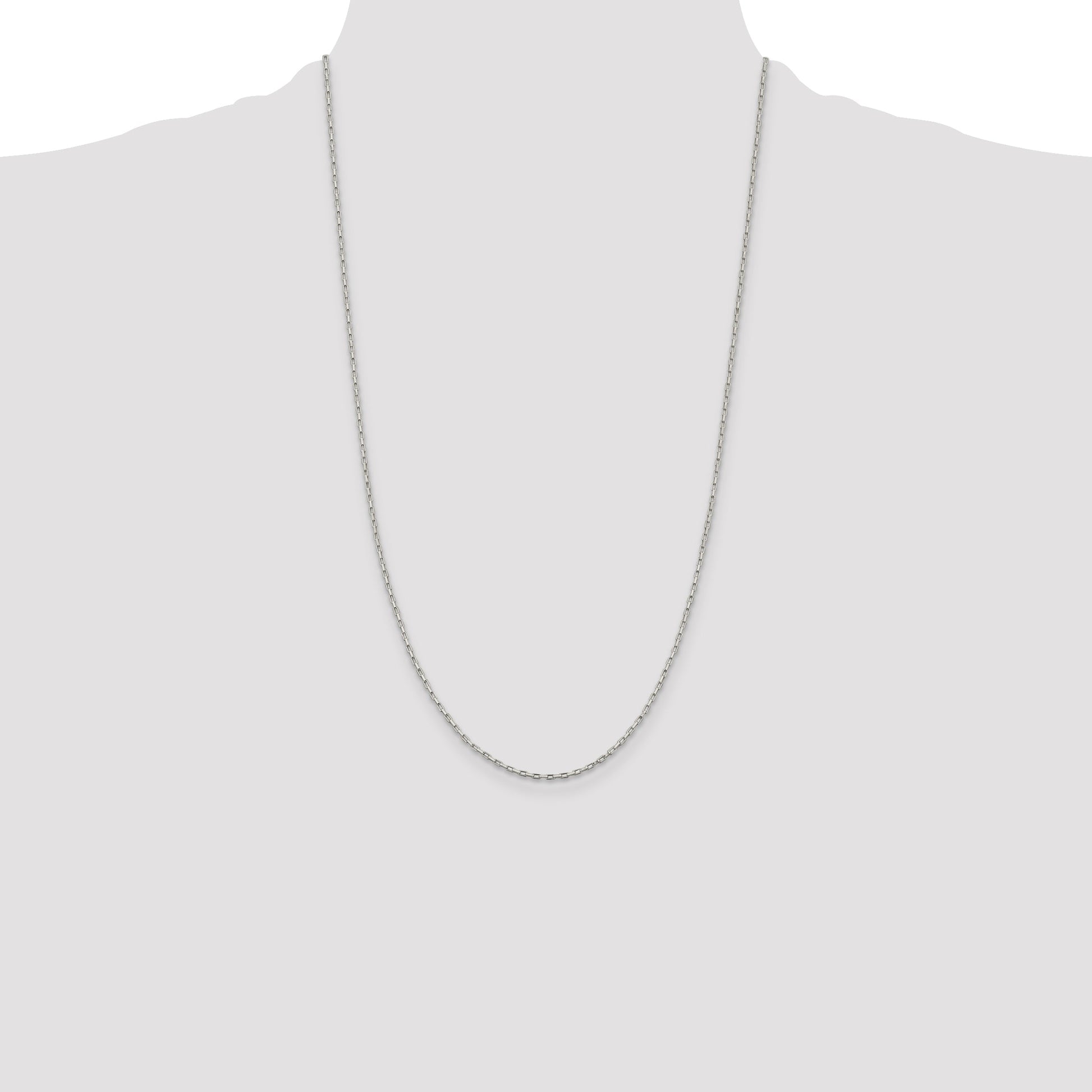 The 26-Inch Sterling Silver 1.3mm Elongated Box Chain showcases elegant craftsmanship and timeless allure. Made with polished 925 sterling silver, this chain gleams with a fine white finish. Its 1.3mm width offers a delicate yet sturdy appearance, perfect for everyday wear or formal occasions. The solid build ensures durability, while the lobster clasp allows for secure wearability. This chain pairs wonderfully with pendants, offering versatility in style. Designed for women who seek sophistication, the 26-Inch Sterling Silver 1.3mm Elongated Box Chain is a must-have for any jewelry collection.
