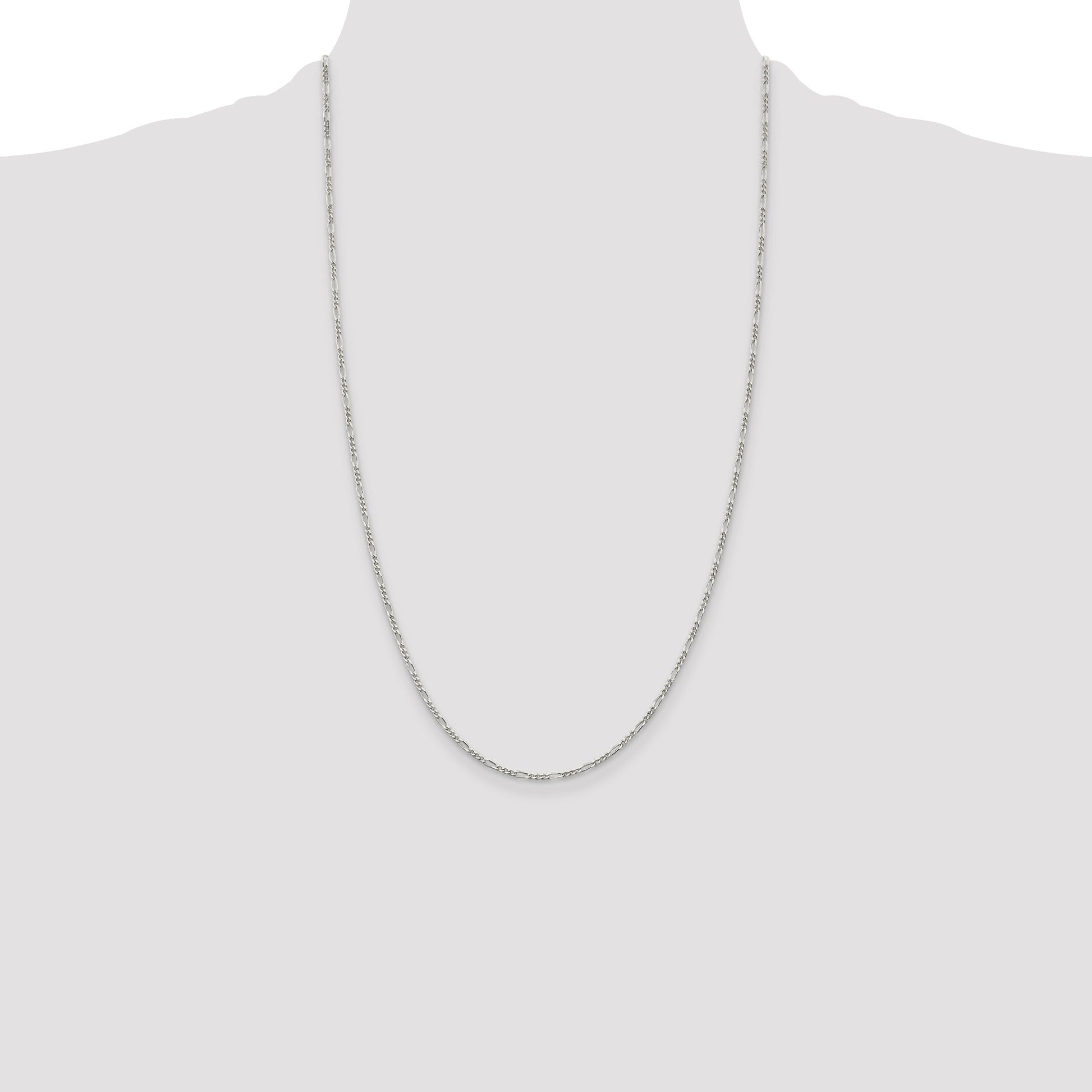 Meet the 26 Inch Sterling Silver 1.75mm Figaro Chain, a classic addition to any jewelry collection. Expertly crafted from genuine 925 sterling silver, known for its strength and eye-catching polish, it offers a radiant finish that will never dull. Measuring 26 inches in length, this chain uses the timeless Figaro design, providing a stylish yet understated look suitable for both casual and formal attire. The chain's 1.75 mm width strikes the perfect balance between elegance and durability, while the spring ring clasp ensures secure wear. Elevate your style and sparkle with this exquisite 26 Inch Sterling Silver 1.75mm Figaro Chain.