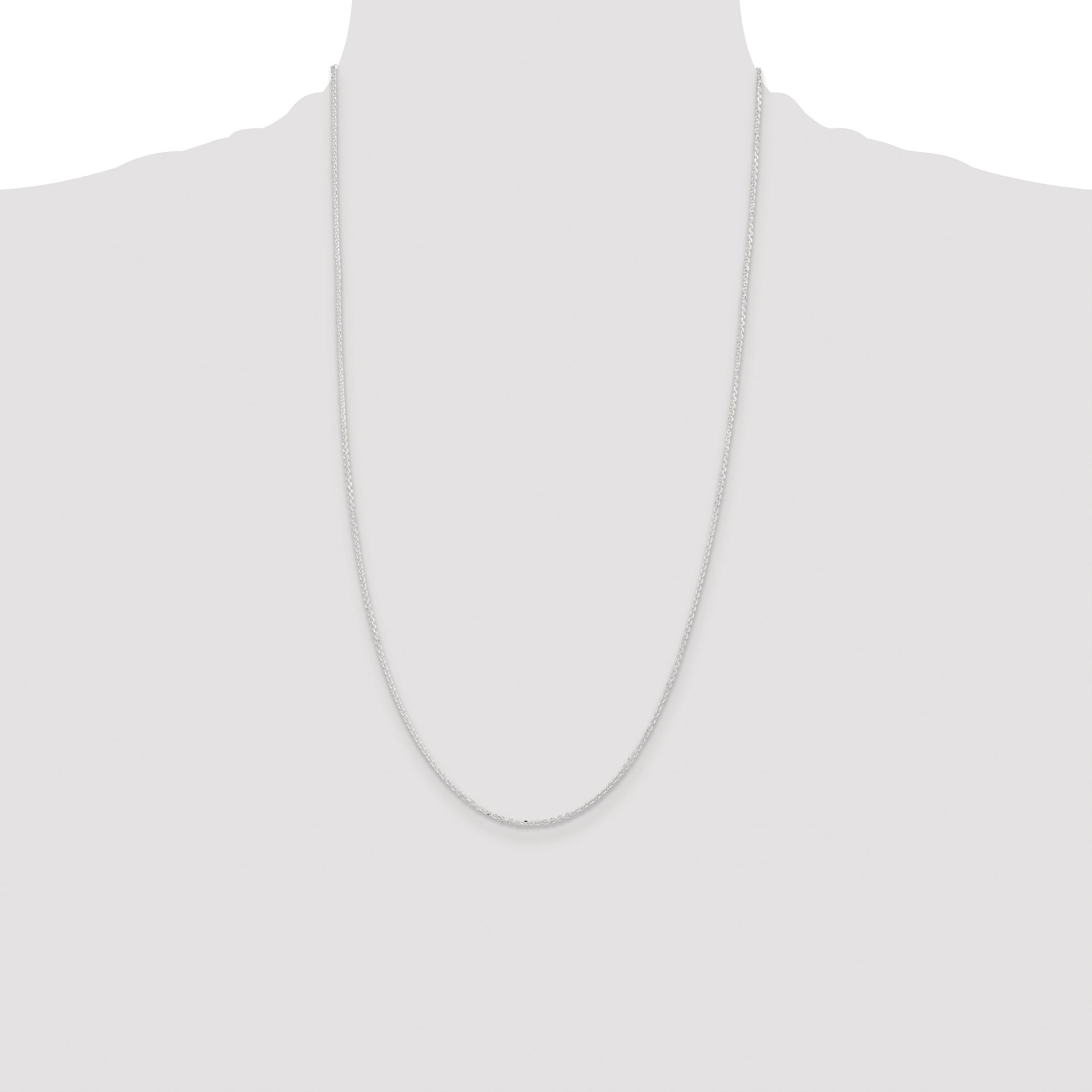 Elegant and versatile, the 26 Inch Sterling Silver 1.85mm Diamond-Cut Forzantina Cable Chain enhances any outfit. Crafted from 925 sterling silver, it boasts a polished finish and anti-tarnish coating for lasting shine. The diamond-cut texture adds a touch of sparkle, making it ideal for both casual and formal wear. Measuring 26 inches long and 1.85 mm wide, this chain features a classic cable style with a reliable spring ring clasp. A solid, machine-made piece, the 26 Inch Sterling Silver Diamond-Cut Forzantina Cable Chain is a timeless addition to any jewelry collection.