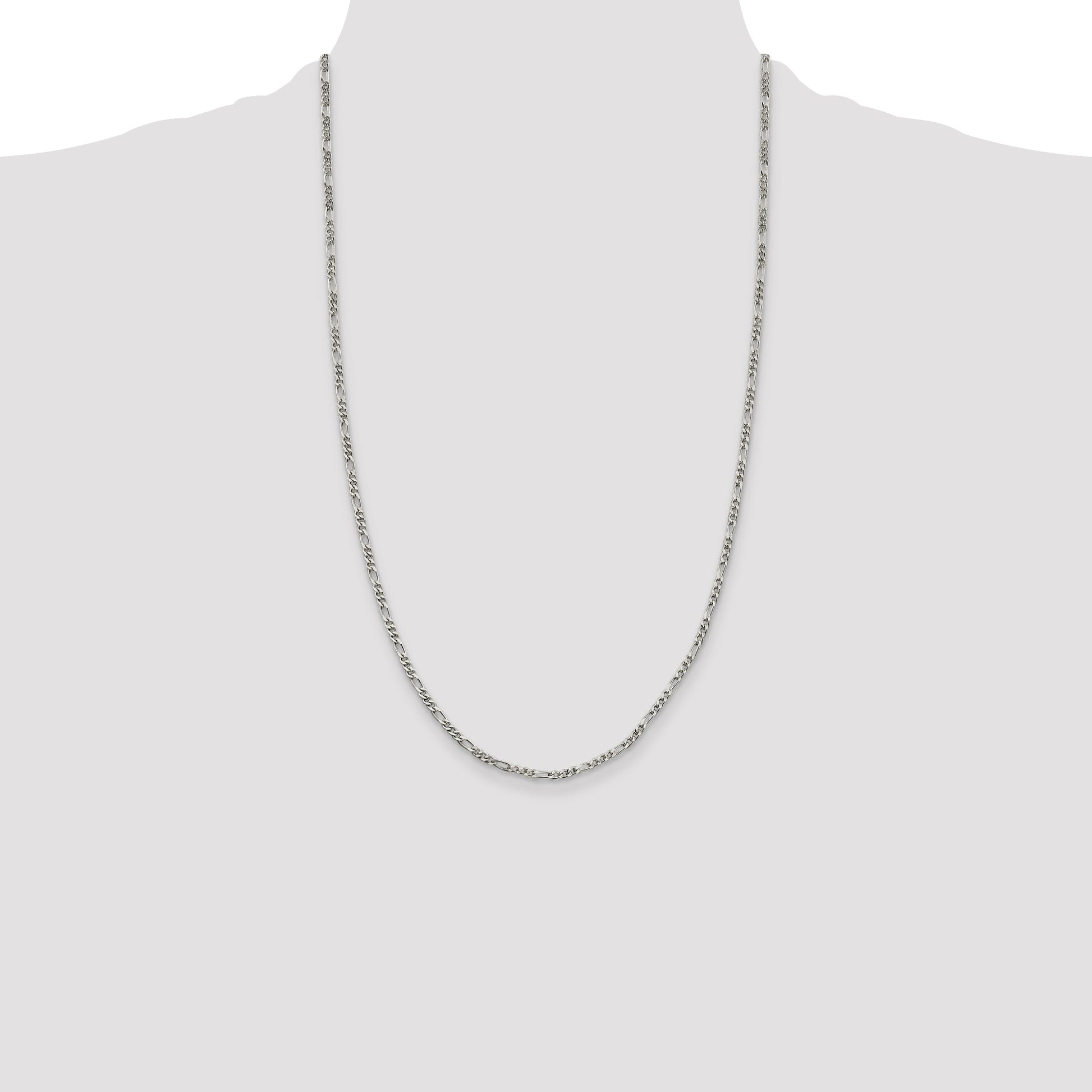 The 26 Inch Sterling Silver 2.5mm Figaro Chain catches the eye with its stunning polished finish. Crafted from 925 sterling silver, this chain shines in its pure white elegance. Measuring 26 inches, it gracefully drapes around the neck, offering a sophisticated look. The Figaro design adds a touch of classic style that never fades. Its sturdy lobster clasp ensures a secure fit, perfect for women who enjoy timeless pieces. This sterling silver Figaro chain combines durability and elegance, making it a standout addition to any jewelry collection.