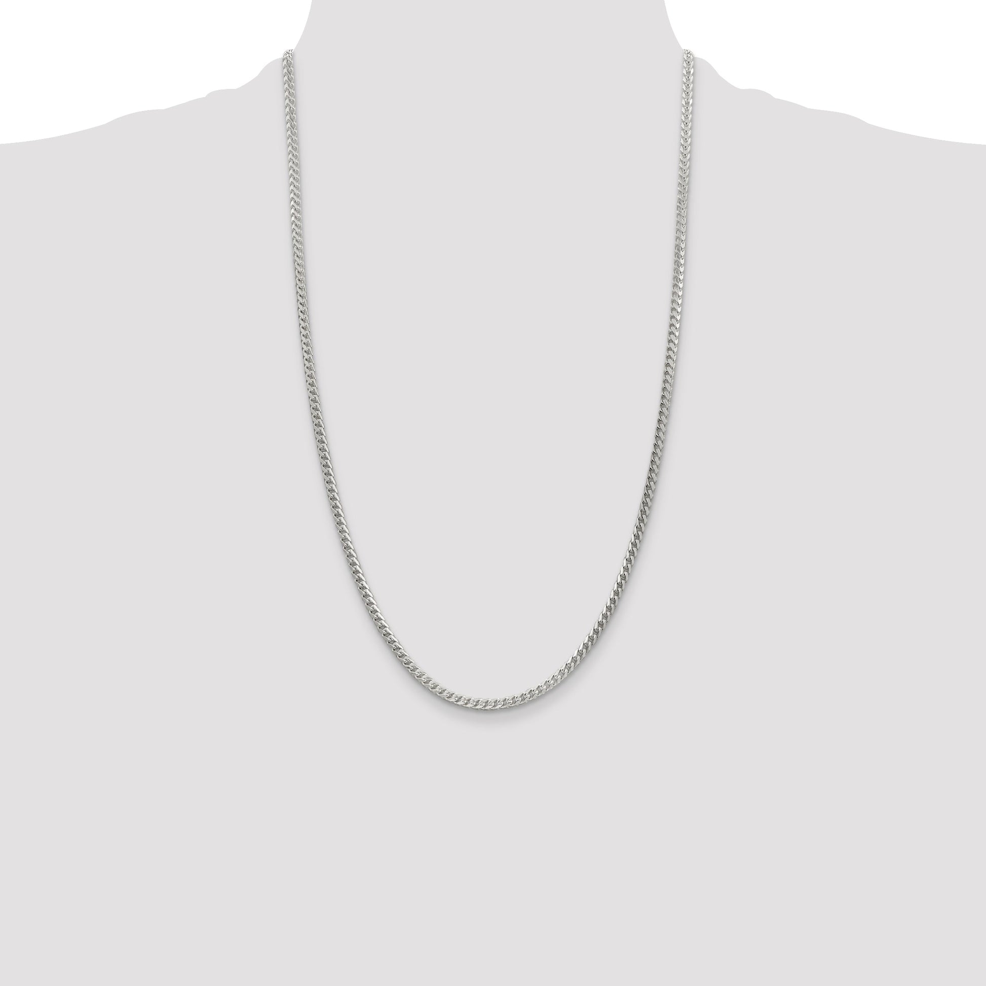 The 26 Inch Sterling Silver 3.1mm Diamond-Cut Square Franco Chain blends elegance with robust design, creating a timeless accessory for the modern woman. Crafted from polished 925 sterling silver, this chain flaunts a sleek diamond-cut texture that catches the light beautifully. Its anti-tarnish coating ensures lasting brilliance, while the durable lobster clasp offers secure wear. With a sturdy 3.4 mm width and a length of 26 inches, this solidly casted piece is perfect for layering or wearing solo. The 26 Inch Sterling Silver 3.1mm D/C Square Franco Chain is an essential addition to any jewelry collection.