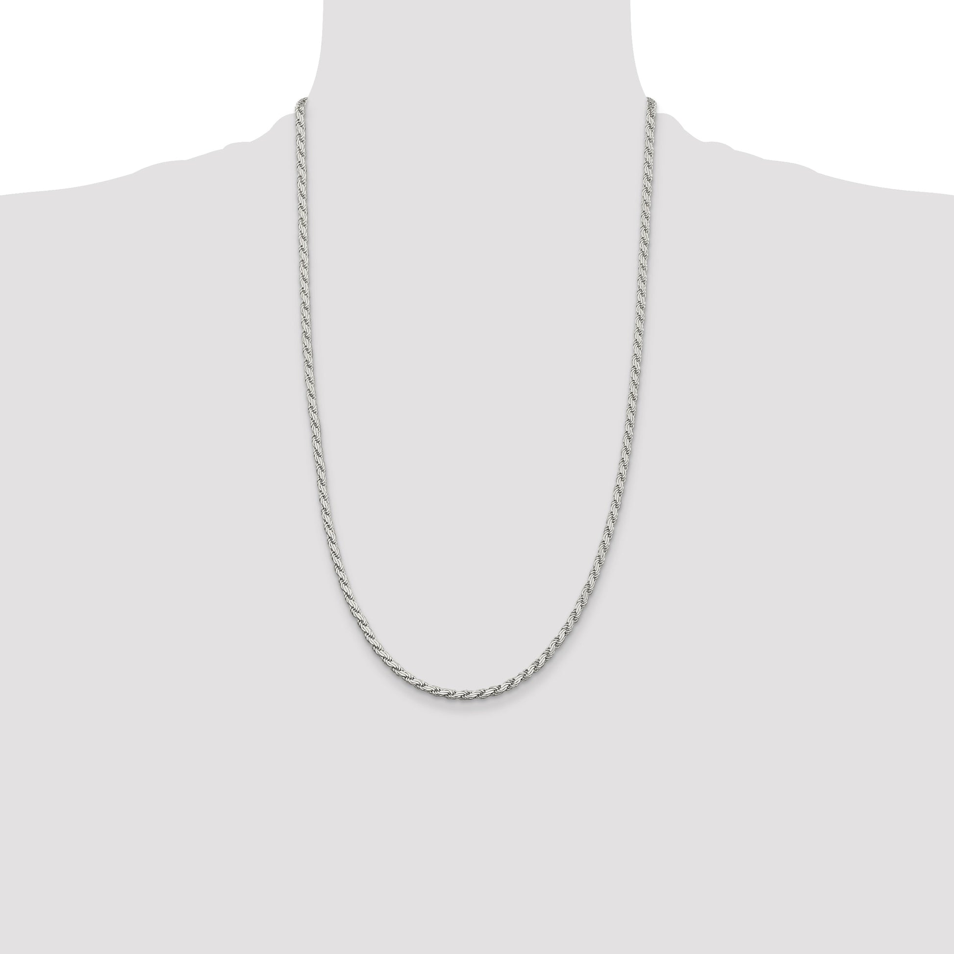 The 26 Inch Sterling Silver 3.1mm Flat Rope Chain drapes elegantly, adding an effortless touch of class to any outfit. Made from 925 sterling silver, it showcases a polished finish that catches the light nicely. The chain measures 26 inches in length and 3.1 mm in width, providing a substantial yet comfortable fit. It features a durable lobster clasp, crafted for secure wear, with an anti-tarnish coating to maintain its pristine appearance for years. This solid, machine-made rope chain blends enduring style and versatility, making the 26 Inch Sterling Silver 3.1mm Flat Rope Chain a must-have piece in any jewelry collection.