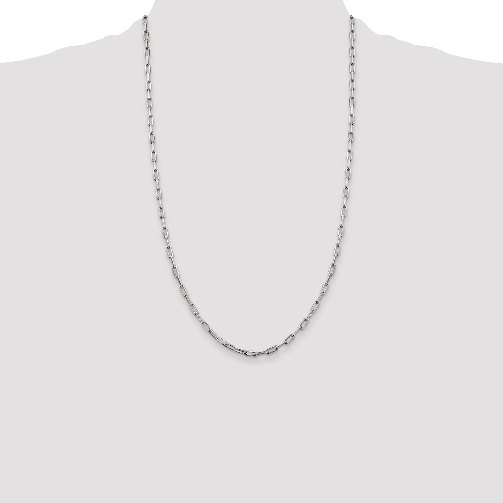 The 26 Inch Sterling Silver 3.25mm Elongated Open Link Chain offers understated elegance for your jewelry collection. Crafted from polished 925 sterling silver, it boasts a sleek cable chain design that measures a comfortable 26 inches in length. This chain features sturdy 3.25mm open links, secured with a lobster clasp, ensuring a reliable fit. Perfectly versatile, it enhances any look, dressed up or down. Whether worn alone or with a pendant, this Sterling Silver 3.25mm Chain stands out with its classic charm, making it a must-have accessory for every woman's wardrobe.