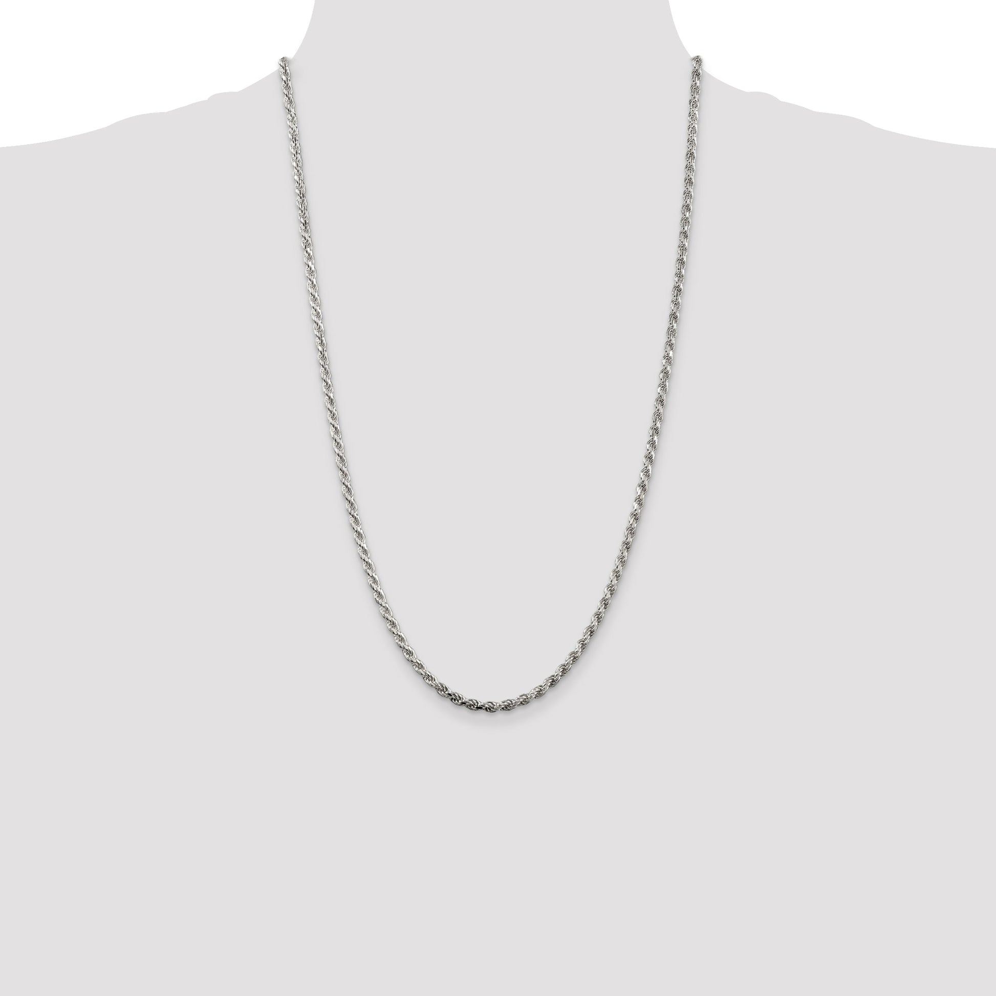 The 26 Inch Sterling Silver 3.2mm Diamond-Cut Rope Chain shines with elegance and grace. Crafted from pure 925 sterling silver, this necklace delivers a polished finish that catches the light beautifully. Its diamond-cut texture adds depth, giving each link a unique sparkle. This solid piece, casted with precision, features a 3mm width that complements its sleek design, while a lobster clasp keeps it secure. The anti-tarnish coating ensures its shine endures. Perfect for any occasion, the 26 Inch Sterling Silver 3.2mm Diamond-Cut Rope Chain is a timeless piece for your collection.