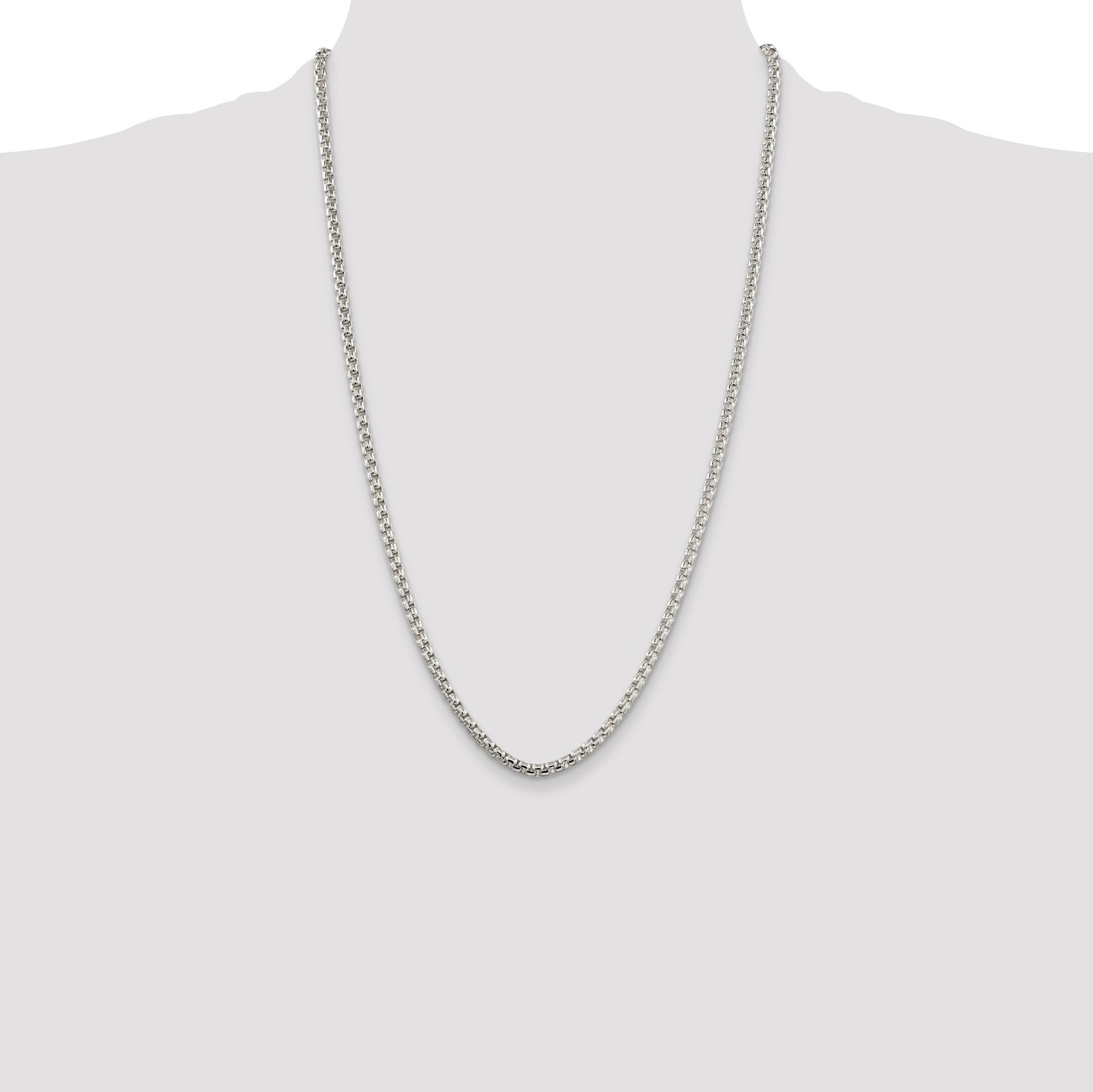 Discover the elegance of the 26 Inch Sterling Silver 3.6mm Round Box Chain. Crafted from 925 sterling silver, this necklace boasts a polished finish that catches the light beautifully. The 26-inch length allows for versatile styling, while the 3.6mm width adds a touch of sophistication. Its durable box chain design, along with an anti-tarnish coating, ensures lasting quality and shine. The lobster clasp provides a secure fit, making it a reliable everyday accessory. Perfect for women who appreciate timeless beauty, the 26 Inch Sterling Silver 3.6mm Round Box Chain is a must-have addition to any jewelry collection.