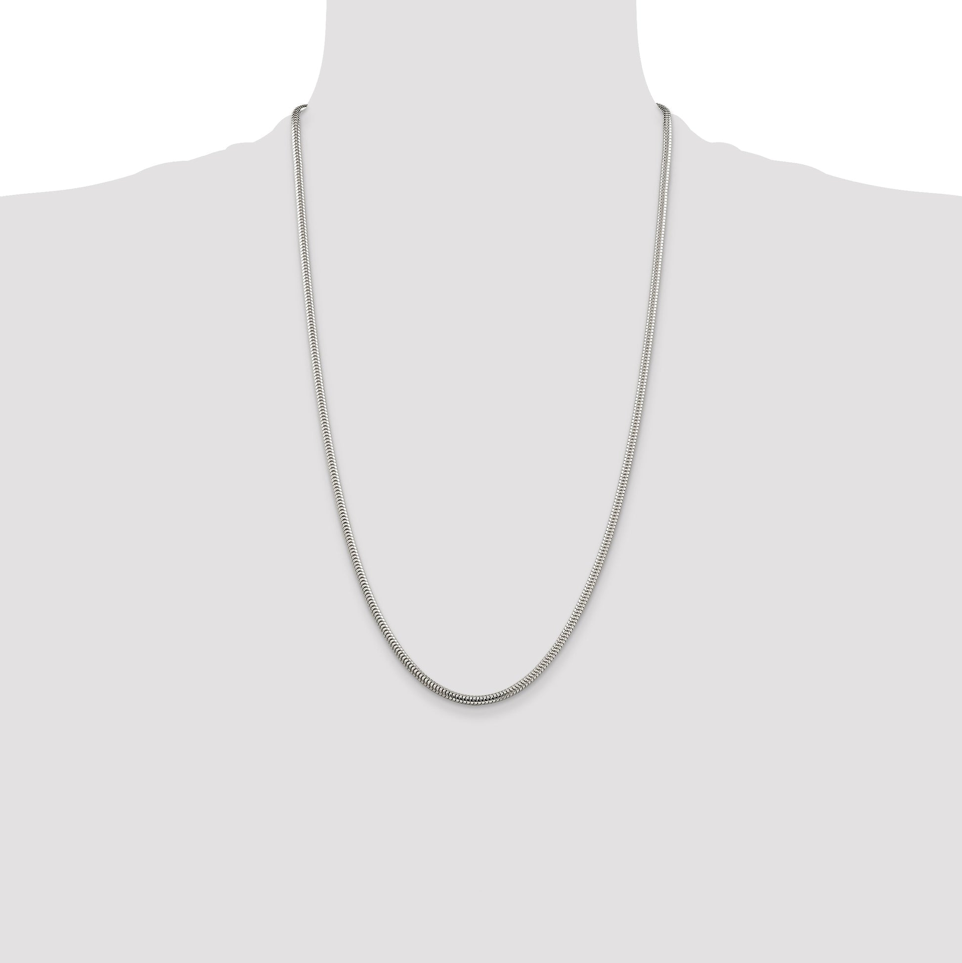 The 26 Inch Sterling Silver 3mm Round Snake Chain offers timeless charm and elegance. Expertly crafted from 925 sterling silver, this chain showcases a brilliant polished finish that sparkles with every movement. Its 3mm width creates a delicate yet noticeable statement piece perfect for any outfit. The classic snake chain design ensures a smooth and seamless look, while the sophisticated round profile adds a touch of refinement. The lobster clasp provides secure fastening, and the anti-tarnish coating keeps it shining bright. The 26 Inch Sterling Silver 3mm Round Snake Chain complements any jewelry collection, a must-have for all occasions.