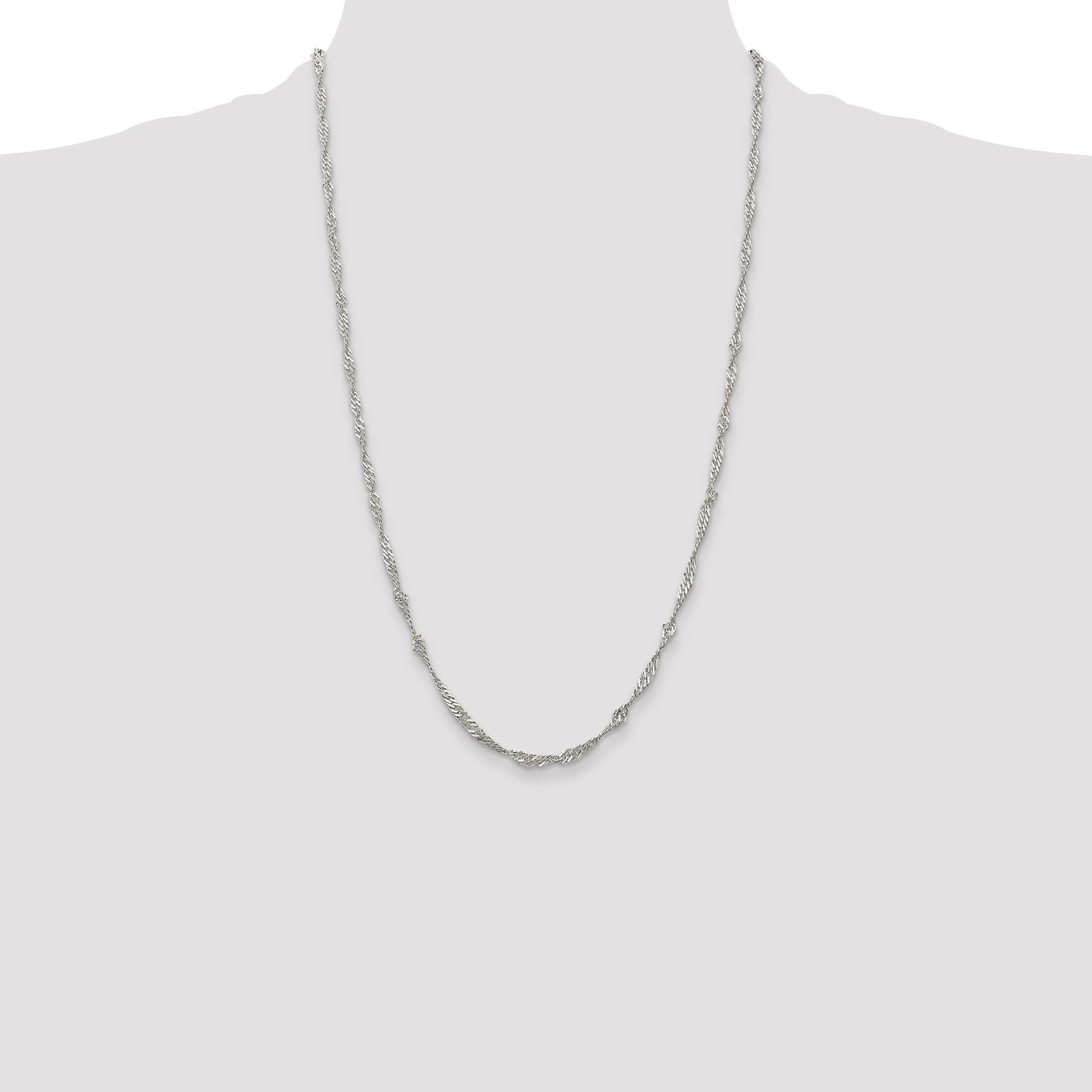 The 26 Inch Sterling Silver 3mm Singapore Chain is an elegant piece designed to complement any jewelry collection. Crafted with 925 sterling silver, this chain possesses a polished finish that adds a subtle brilliance to its white hue. The Singapore link style gives it a unique twist, making it stand out from standard chains. It measures a generous 26 inches, offering versatility for any outfit. With a 3 mm width, it strikes the perfect balance between lightness and presence. The secure lobster clasp ensures a reliable hold, making the 26 Inch Sterling Silver 3mm Singapore Chain a lasting addition to your wardrobe.