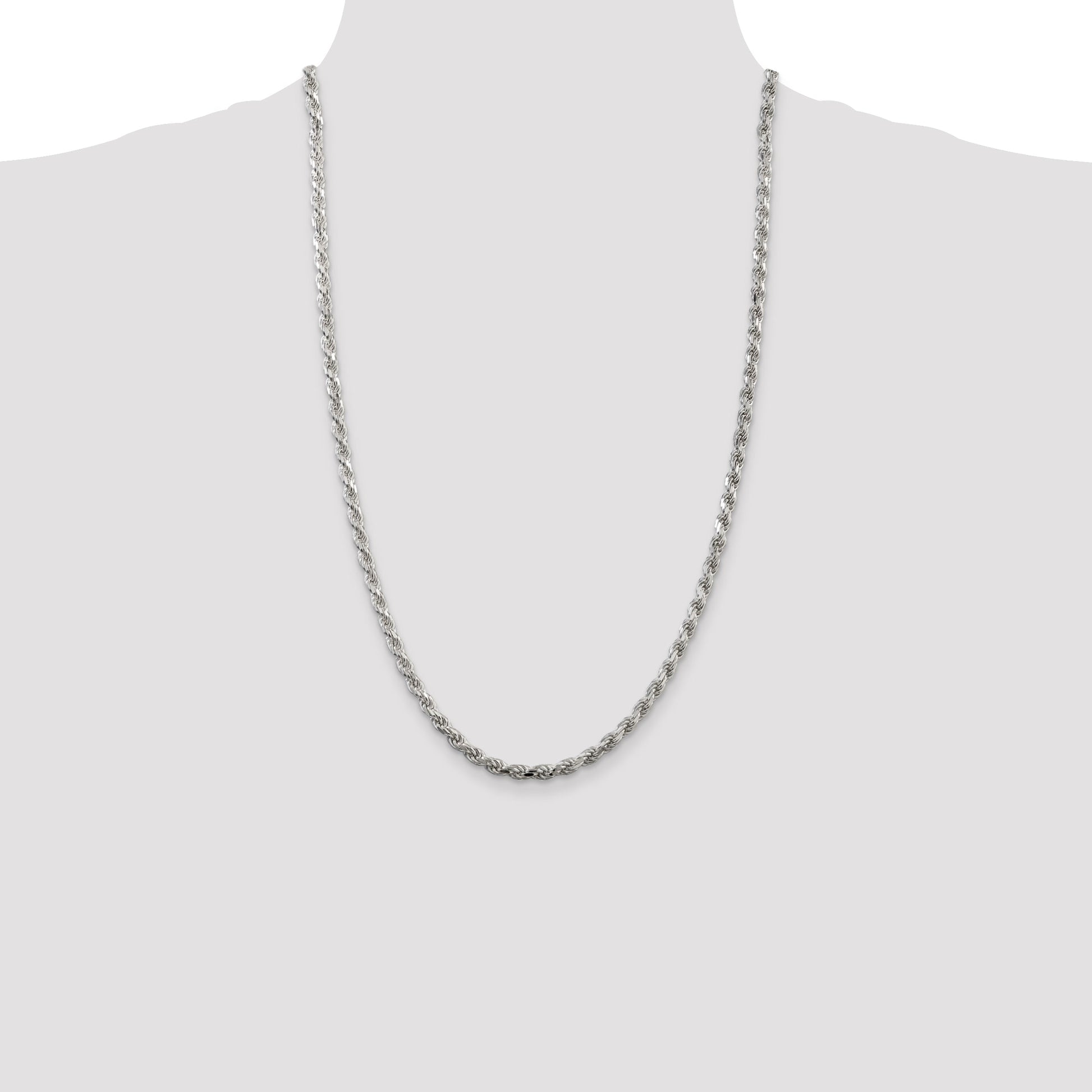 The stunning 26 Inch Sterling Silver 4.25mm Diamond-Cut Rope Chain is a masterpiece in fine jewelry. Crafted from genuine 925 sterling silver, this necklace shines with a polished finish. The diamond-cut texture gives it a striking, brilliant appearance. With a width of 4.25mm, it elegantly drapes at 26 inches, perfect for any occasion. A lobster clasp ensures security, while the anti-tarnish coating keeps the chain looking pristine. Its machine-made construction promises durability. An ideal choice for women seeking to make a statement, the 26 Inch Sterling Silver 4.25mm Diamond-Cut Rope Chain captures both elegance and finesse.