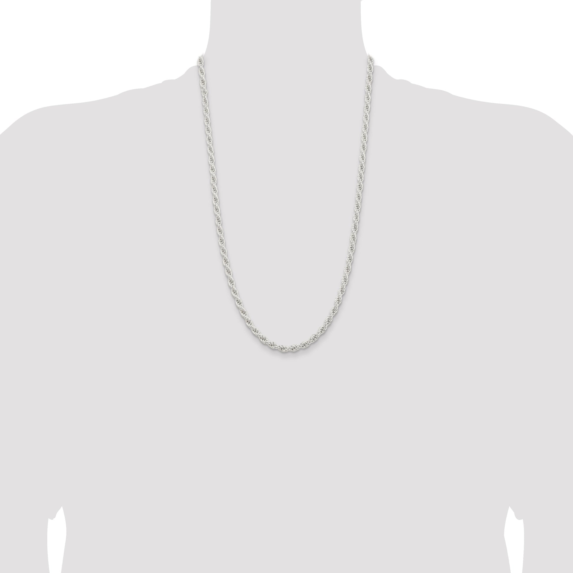 The 26 Inch Sterling Silver 5mm Solid Rope Chain offers a touch of elegance and sophistication. Crafted from 925 sterling silver, this polished necklace boasts a solid, sturdy design that glistens effortlessly. Measuring 26 inches in length, the rope chain provides a classic look with its 5mm width, ensuring both style and durability. The lobster clasp ensures a secure fit, seamlessly integrating into the chain's sleek design. This white-toned sterling silver chain, complete with an anti-tarnish coating, promises longevity. Perfect for complimenting any outfit, the 26 Inch Sterling Silver 5mm Solid Rope Chain is an essential addition to any jewelry collection.