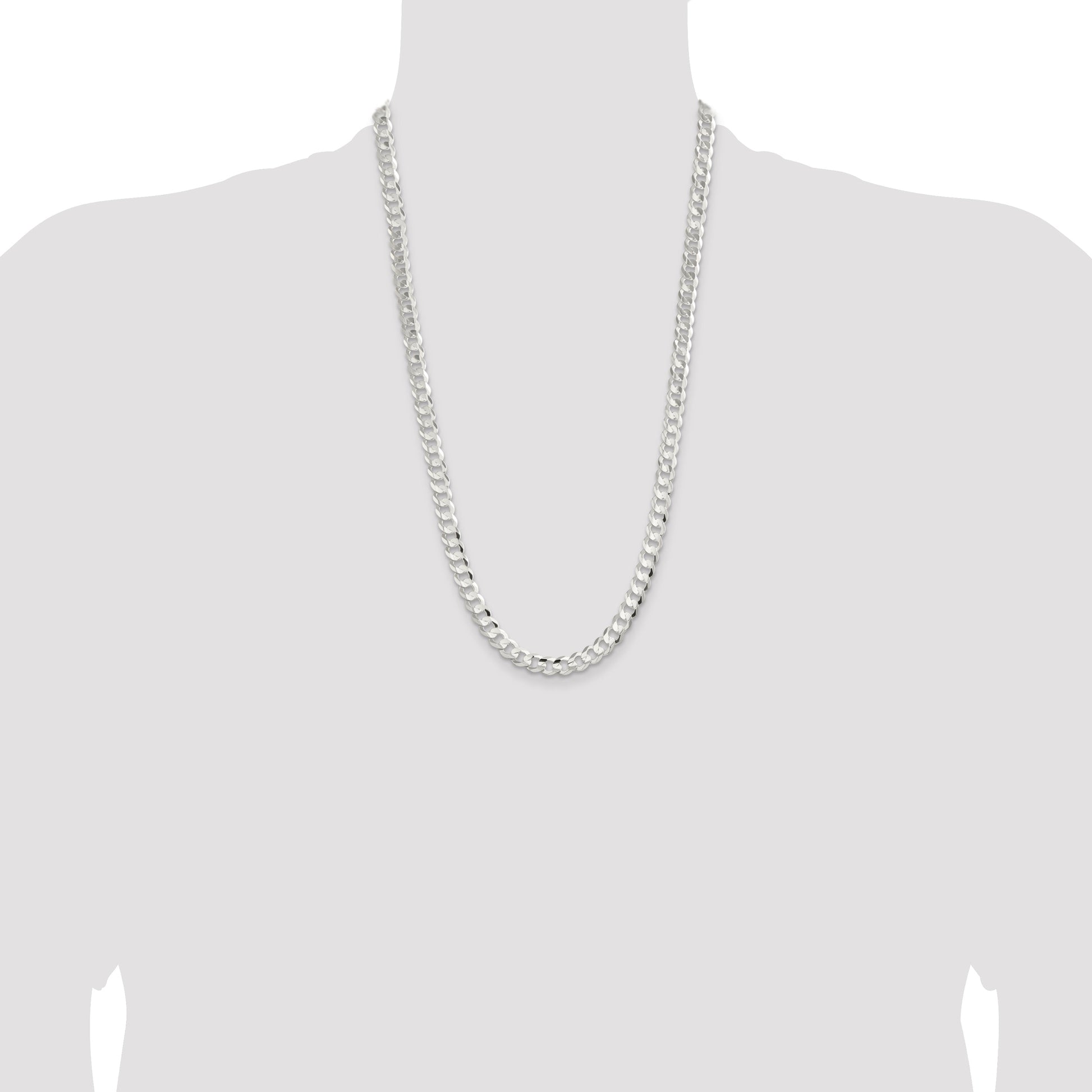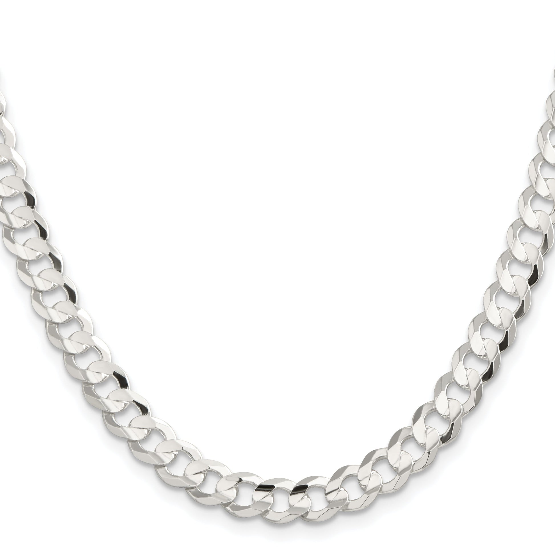 The 26 Inch Sterling Silver 7.8mm Concave Beveled Curb Chain is a stylish choice for the modern man. Crafted from 925 sterling silver and finished with a polished shine, this chain exudes sophistication. Its robust 8mm wide curb style, complete with a concave profile and beveled edges, captures a unique sense of depth and texture. The 26-inch length offers a comfortable fit for any neck, secured with a sturdy lobster clasp. This necklace also features anti-tarnish coating, ensuring lasting brilliance. Elevate any outfit with this Sterling Silver Curb Chain, a must-have accessory for any wardrobe.
