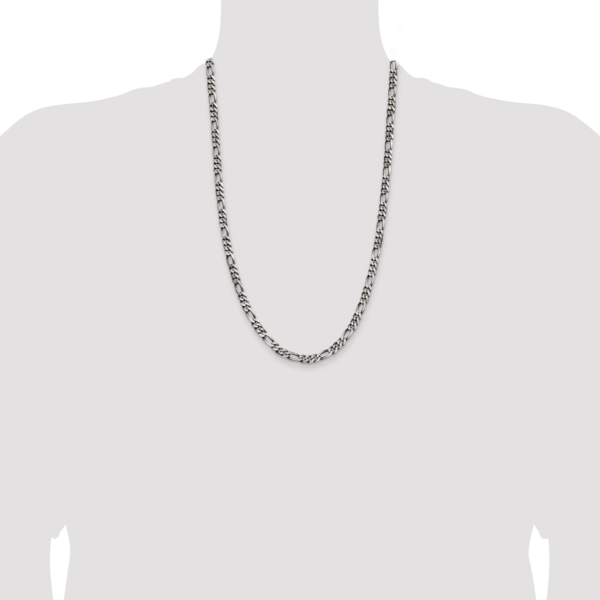 Meet the 26 Inch Sterling Silver Antiqued 5.5mm Figaro Chain, a standout piece for any jewelry collection. Crafted with 925 sterling silver, it pairs elegance with a classic design. The antiqued finish adds a touch of vintage charm, offering a timeless appeal. The chain's 5.5mm width strikes a perfect balance between bold and elegant, making it a versatile accessory for any occasion. A secure lobster clasp ensures ease of wear. Whether dressed up or down, the 26 Inch Sterling Silver Antiqued 5.5mm Figaro Chain adds a dash of sophistication to any outfit.
