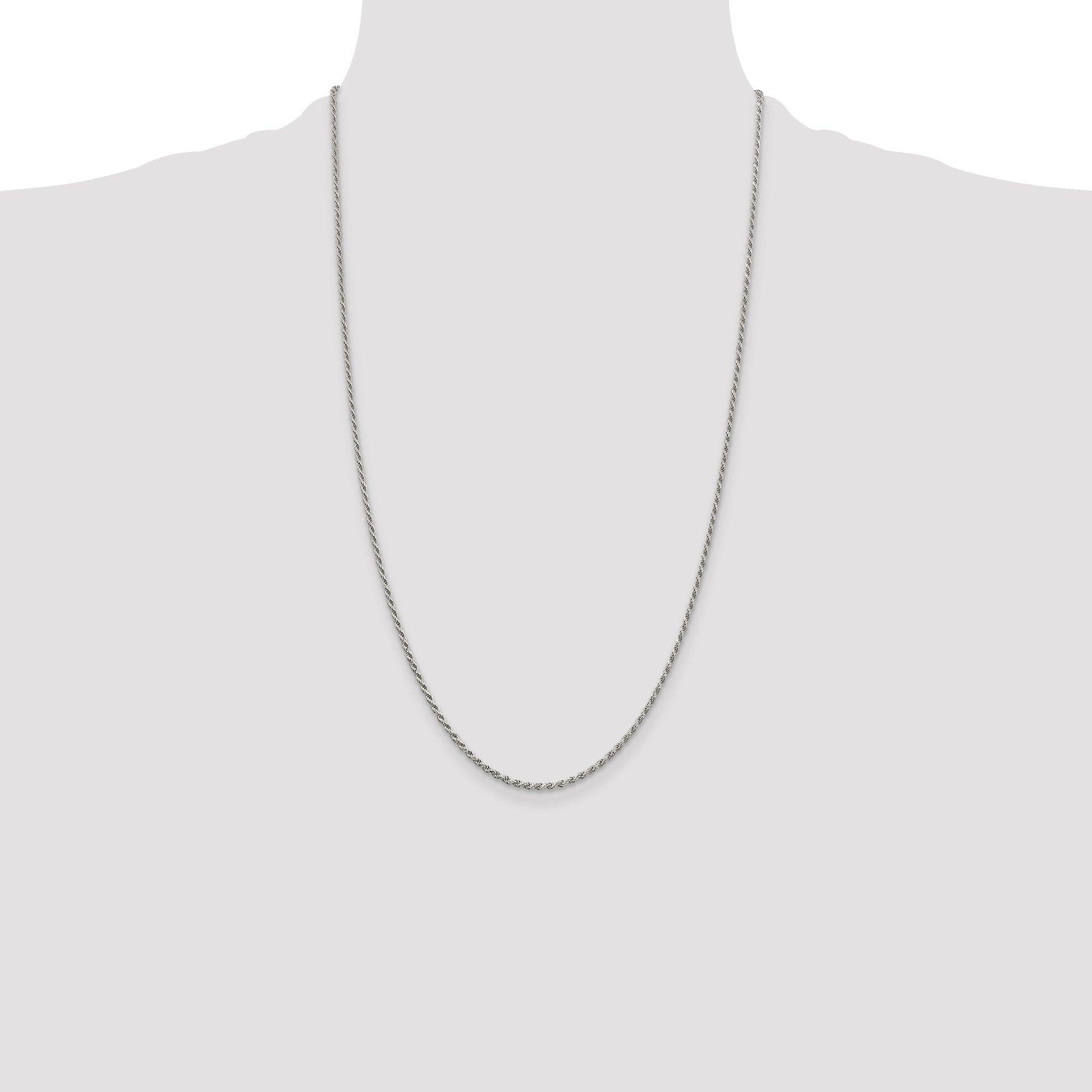 Discover elegance with this 26-inch sterling silver rhodium-plated diamond-cut rope chain. Crafted with precision, this necklace gleams with a polished finish, showcasing the timeless appeal of sterling silver with a dazzling rhodium plating for added shine and protection. The 1.7mm diamond-cut texture gives it a unique sparkle, catching the light with every move. Its durable lobster clasp ensures secure wear, making it perfect for daily use. Whether layering or wearing solo, this chain elevates any outfit. Fall in love with the versatility and charm of this sterling silver rhodium-plated diamond-cut rope chain today.