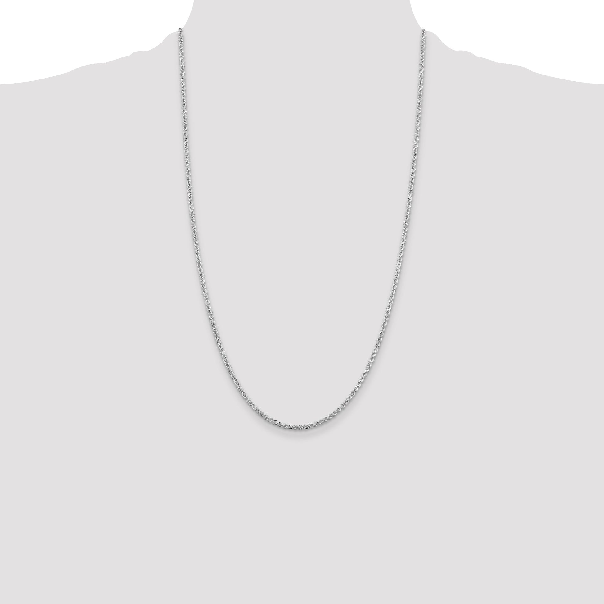 Introducing the 26-Inch Sterling Silver Rhodium-Plated Solid Rope Chain, a timeless piece that adds sophistication to any look. Made from 925 sterling silver, this necklace gleams with a polished finish. Its rope design offers durability and style, measuring 2.3mm in width for a sleek yet sturdy feel. The lobster clasp secures the chain with ease, ensuring a comfortable fit. Perfectly suited for daily wear or special occasions, this chain caters to a woman's style needs. Elevate your jewelry collection with the stunning 26-Inch Sterling Silver Rhodium-Plated Solid Rope Chain.