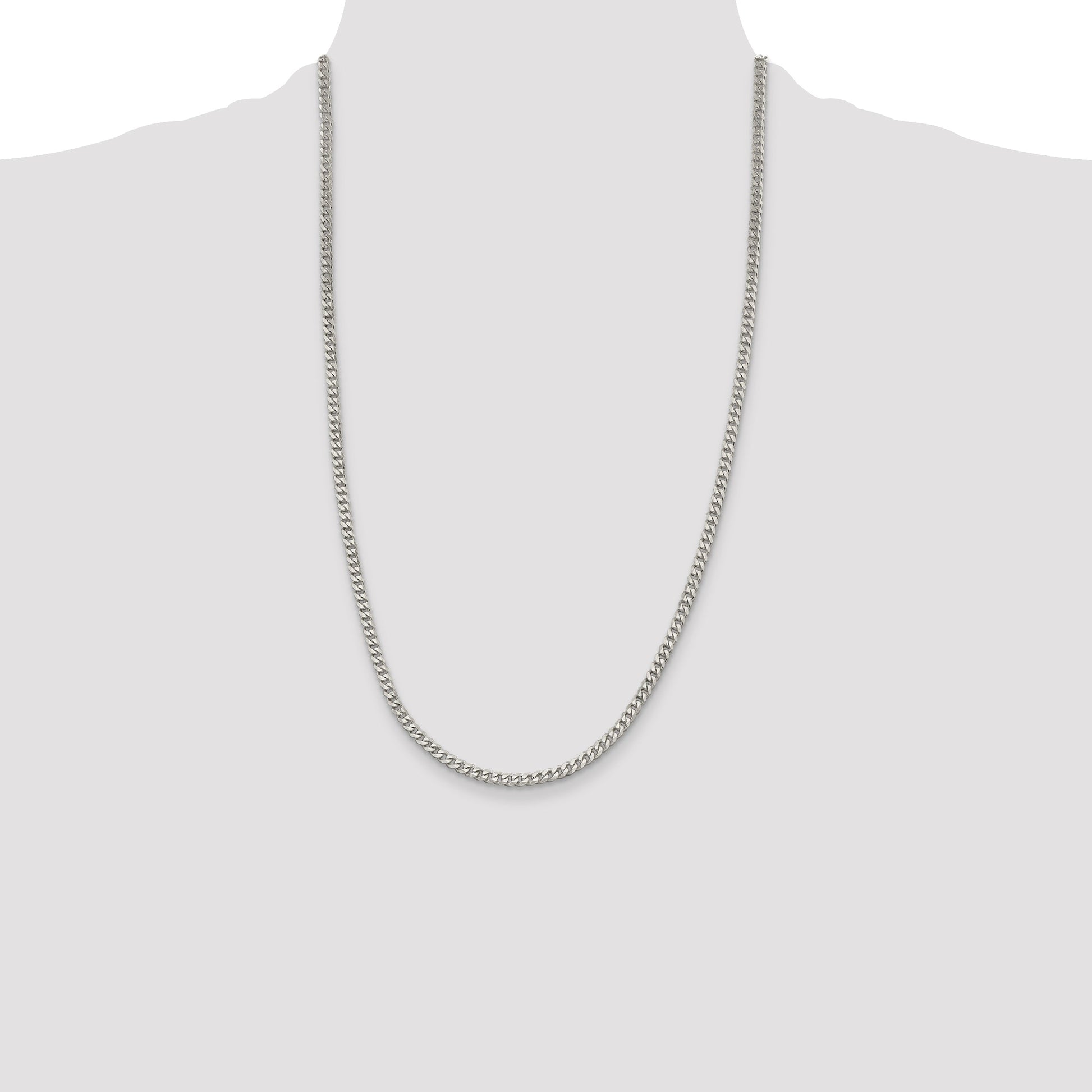The 26 Inch Sterling Silver Rhodium-Plated 3.5mm Curb Chain is the perfect touch to any outfit. Made with 925 sterling silver, this necklace boasts a polished finish that shines brightly. Its 26-inch length offers a versatile look for any occasion. The 3.5mm width adds just the right amount of statement without overpowering. Featuring a solid curb chain style, it's meticulously machine-made for durability and appeal. The lobster clasp ensures secure wear, and the rhodium plating enhances its silver tone for lasting sheen. This chain is a must-have for anyone seeking understated style with high-quality elegance.