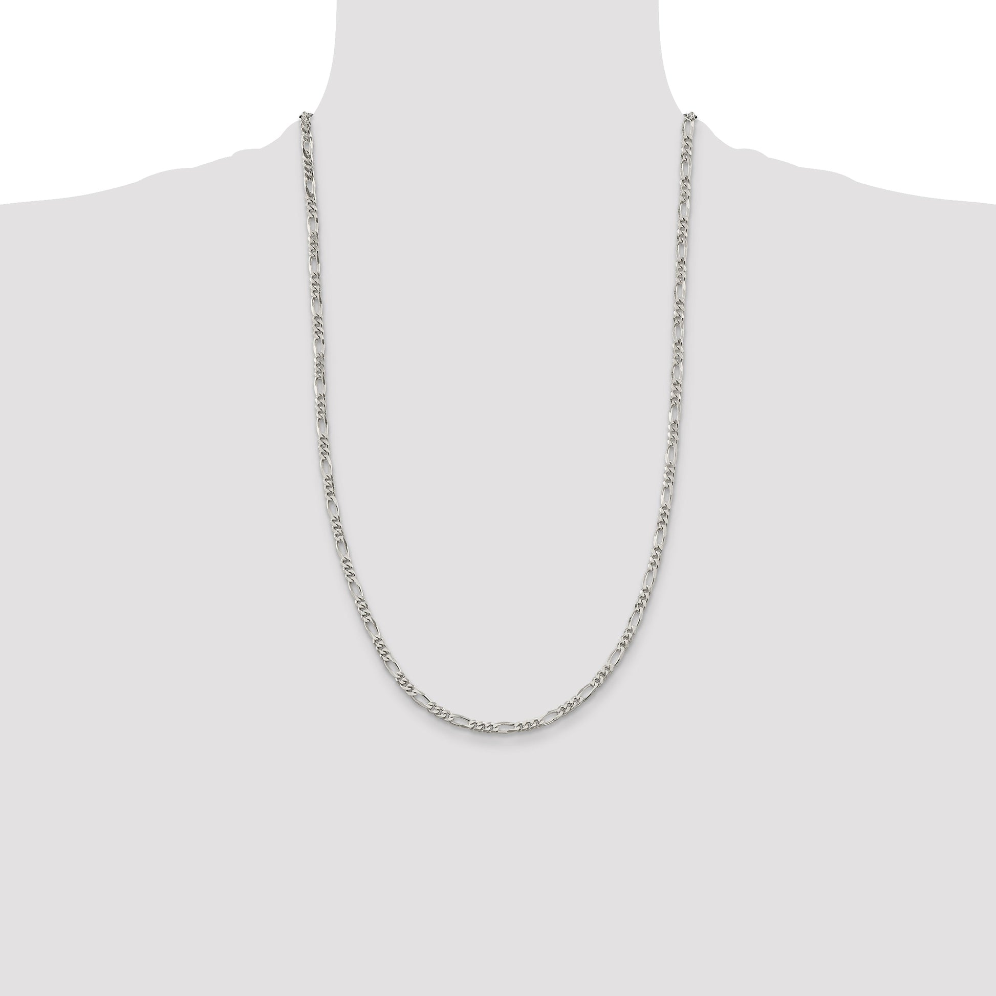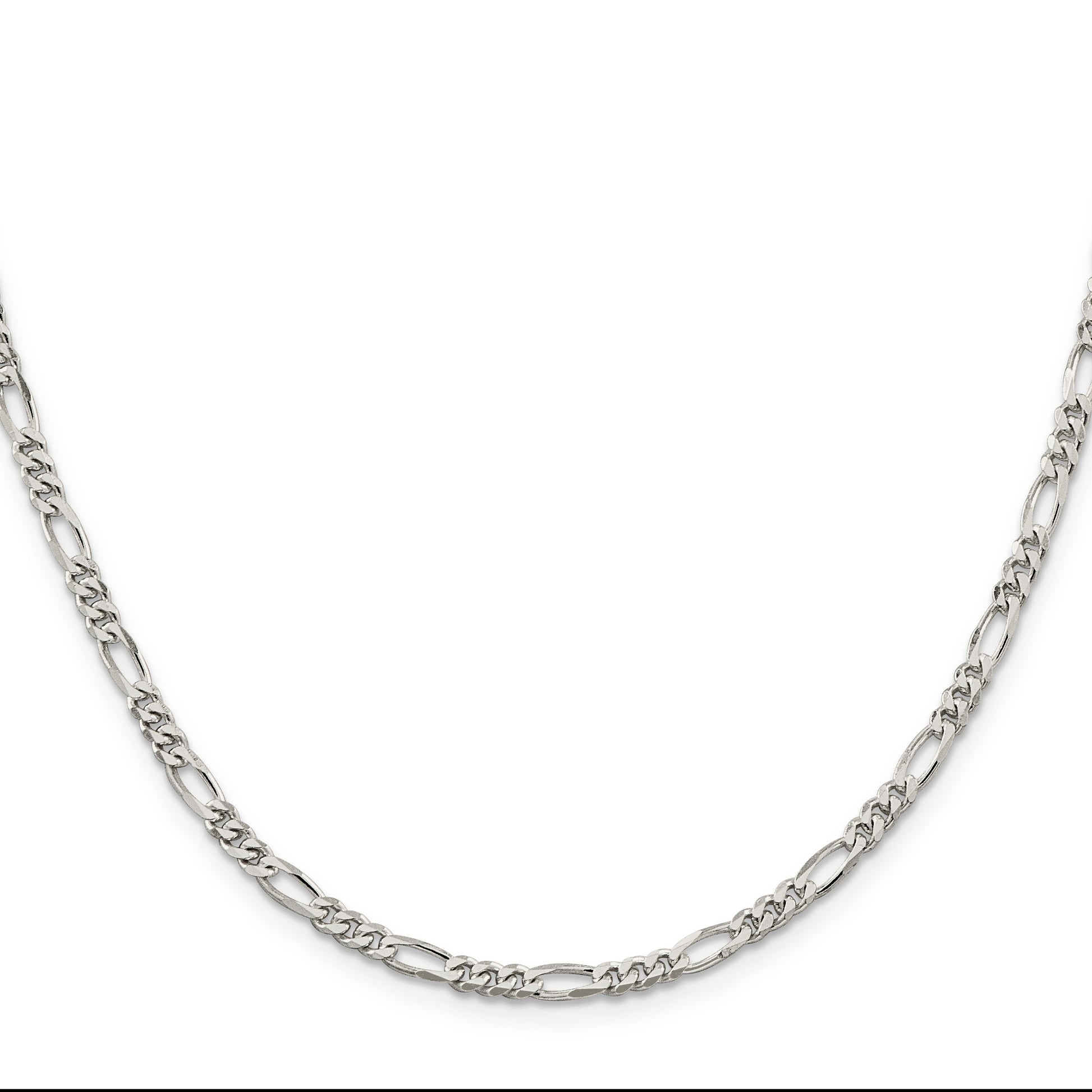 Discover the timeless elegance of the 26 Inch Sterling Silver Rhodium-Plated 3.5mm Figaro Chain. This stunning necklace, crafted with 925 sterling silver, boasts a lustrous polished finish. The Figaro design adds a unique twist with its distinct chain pattern, while the rhodium plating ensures a long-lasting silver tone that dazzles. Measuring 26 inches long and 3.5 mm wide, the chain is not just beautiful but also sturdy, secured with a reliable lobster clasp. Ideal for women seeking a blend of style and durability, this Figaro chain is a piece you'll cherish forever.