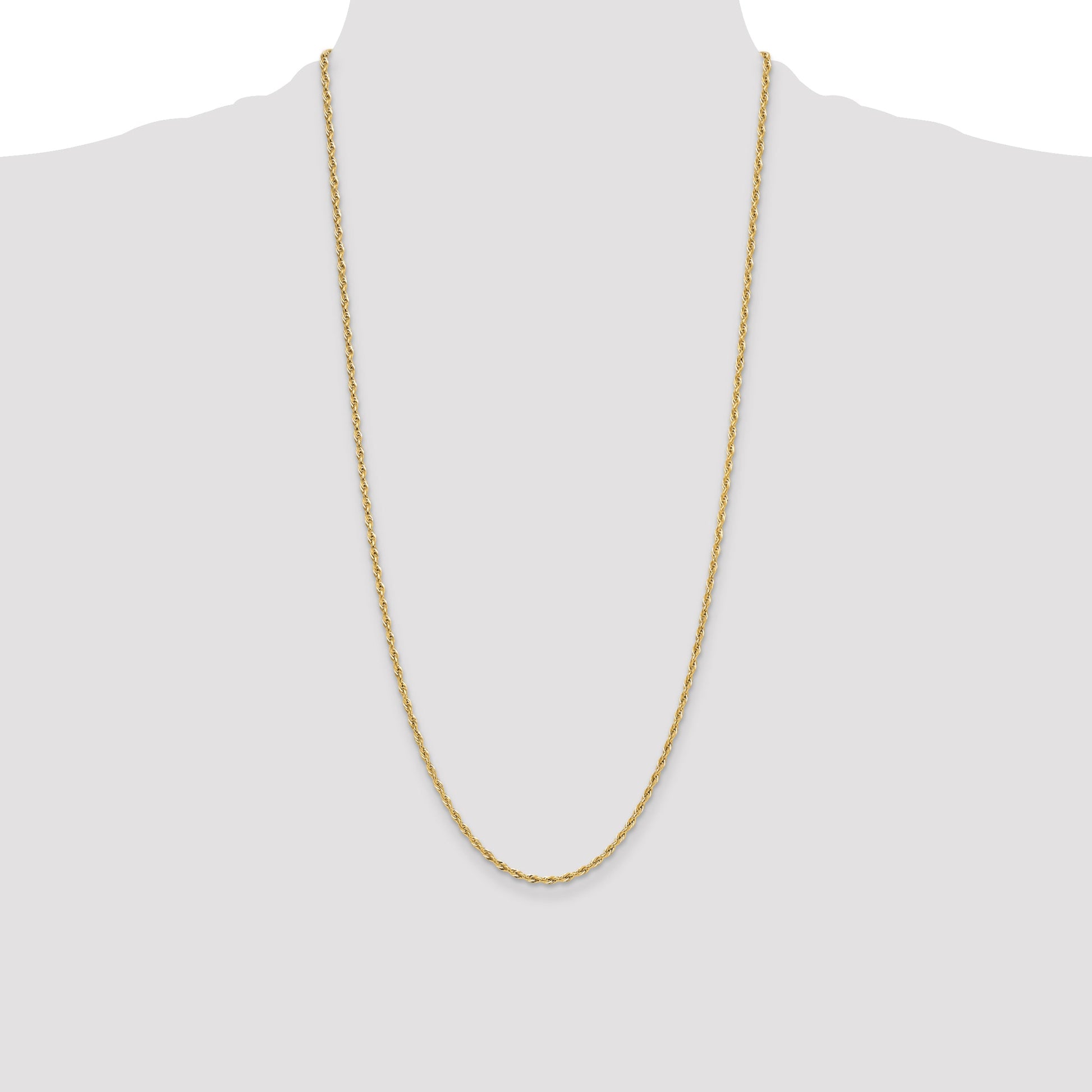 Discover the allure of our 28 Inch 14K Yellow Gold Semi-Solid Rope Chain. Crafted from pure 14K gold, this polished masterpiece has a 2.5mm width that adds a touch of elegance to any attire. Designed as a unisex necklace, its semi-solid construction offers lasting durability without sacrificing beauty. The lobster clasp ensures secure and easy fastening. Each link in the 28-inch chain glimmers in the light, making it a standout piece in any jewelry collection. Elevate your style with the timeless elegance of the 28 Inch 14K Yellow Gold Semi-Solid Rope Chain.