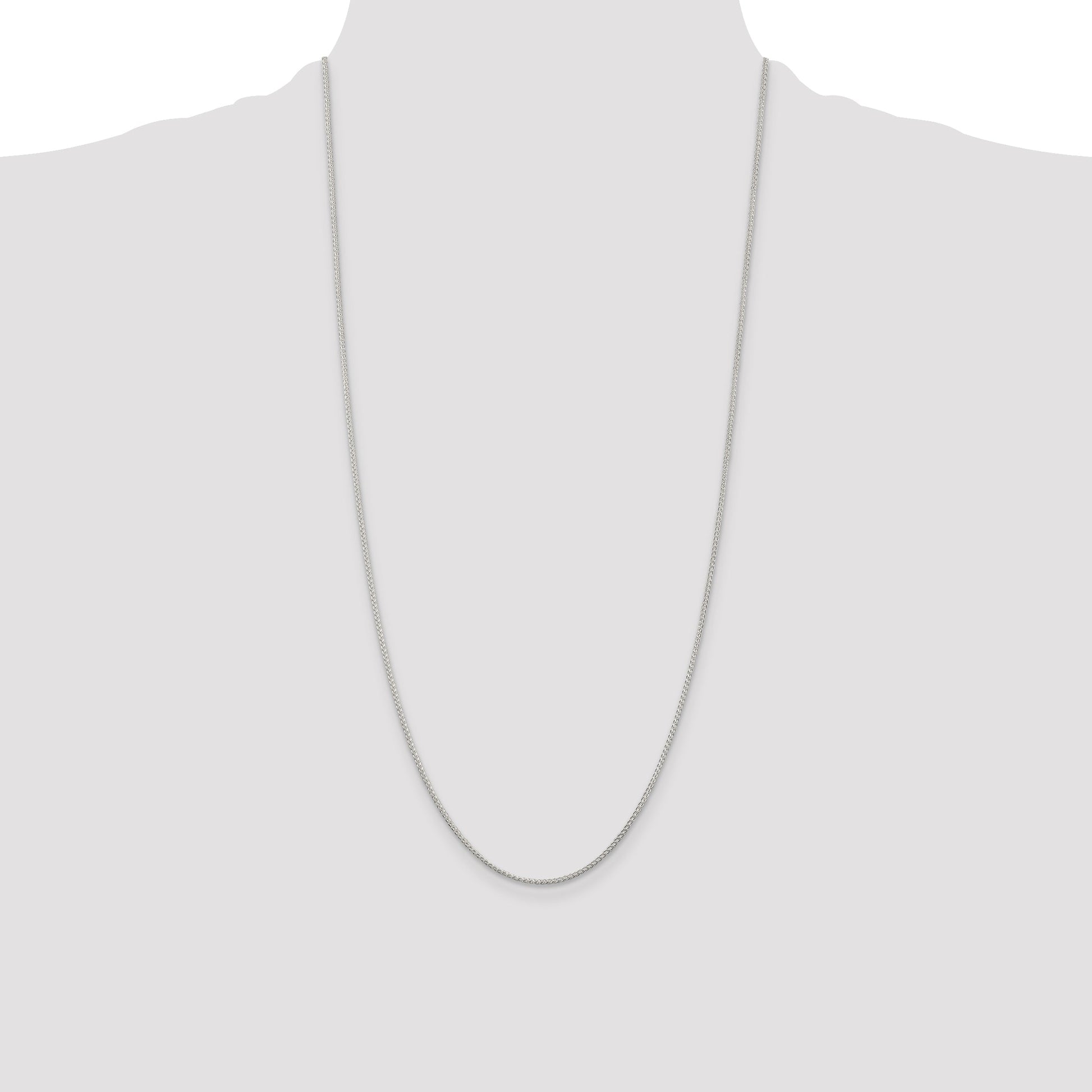 The 28 Inch Sterling Silver 1.25mm Round Spiga Chain is a true classic in the realm of fine jewelry. This elegant piece features a polished finish and anti-tarnish coating, ensuring a lasting shine that you can count on. Crafted from high-quality 925 sterling silver, the Spiga, or wheat, chain type offers a unique and eye-catching texture. Measuring 28 inches, it gracefully adorns the neckline. A sturdy lobster clasp secures it in place, giving you peace of mind. With its solid, machine-made construction, this necklace is a perfect gift for the woman who appreciates timeless beauty.