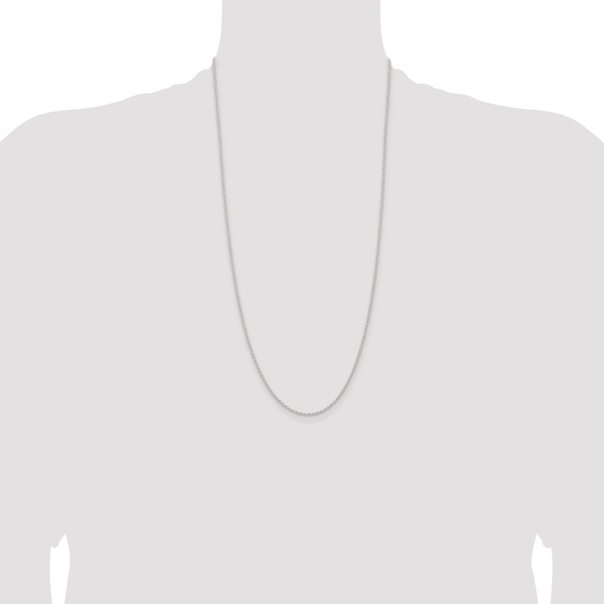 Meet the 28 Inch Sterling Silver 1.5mm Solid Rope Chain, where elegance meets durability. Crafted from pure 925 sterling silver, this 28-inch chain beautifully showcases a polished finish. Its classic rope design is both timeless and versatile, perfect for any occasion. The solid build ensures strength, while the anti-tarnish coating keeps it shining. Equipped with a spring ring clasp, it's easy to wear and secure. At 1.5mm wide, it makes a gentle yet noticeable statement. This sterling silver rope chain is an essential addition to any fine jewelry collection that radiates style.