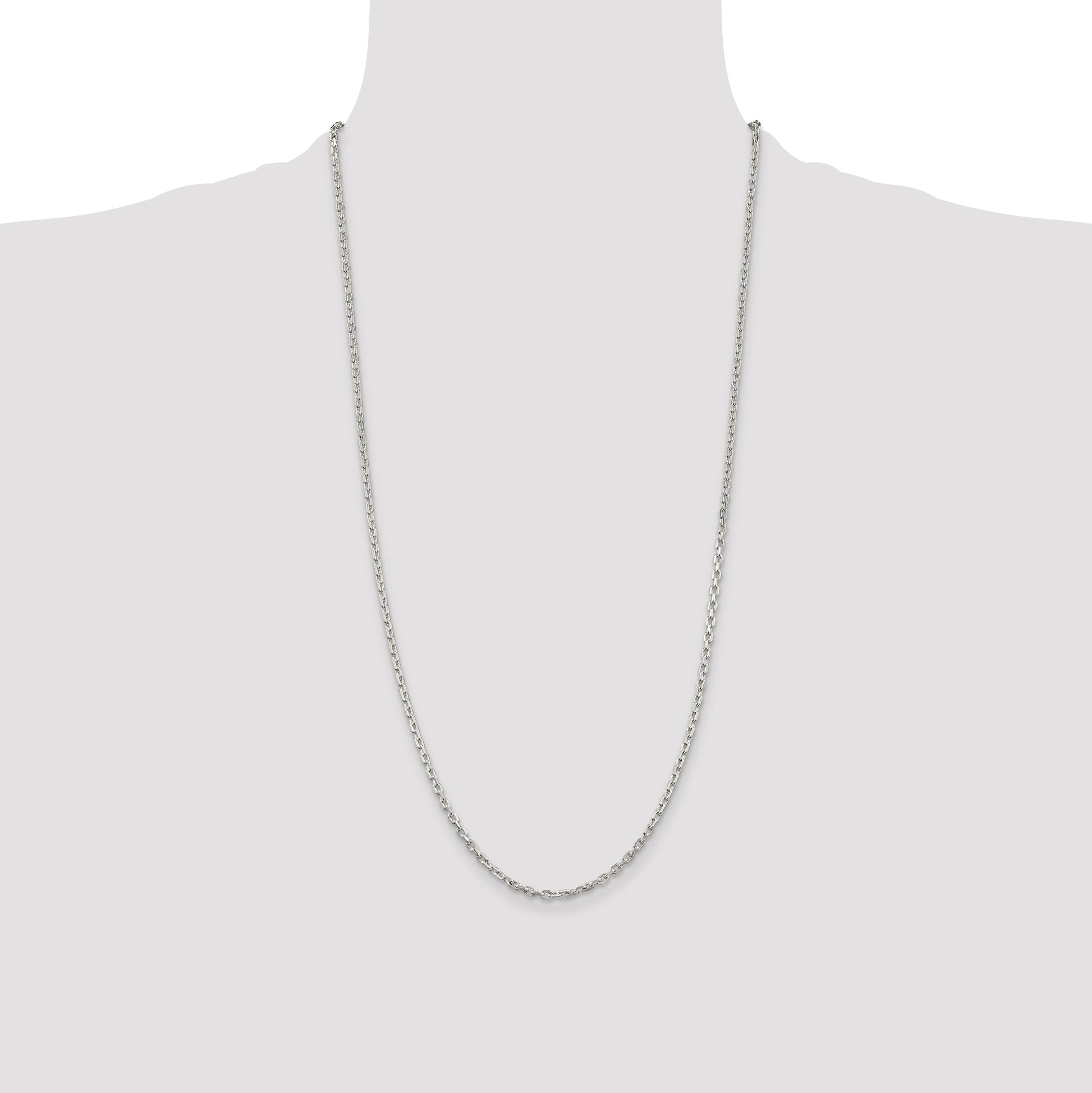 The 28-Inch Sterling Silver 2.75mm Beveled Oval Cable Chain is a classic timeless necklace made for style and elegance. Crafted with 925 sterling silver, its polished finish gleams with every movement. This chain proudly features a 28-inch length, offering versatility for any outfit or occasion. Its 2.75mm width provides a balanced look that isn't too bold yet makes a statement. The beveled oval open links catch light from every angle, adding a subtle sparkle around your neck. The reliable lobster clasp ensures security while wearing. Add sophistication with the 28-Inch Sterling Silver Beveled Chain.