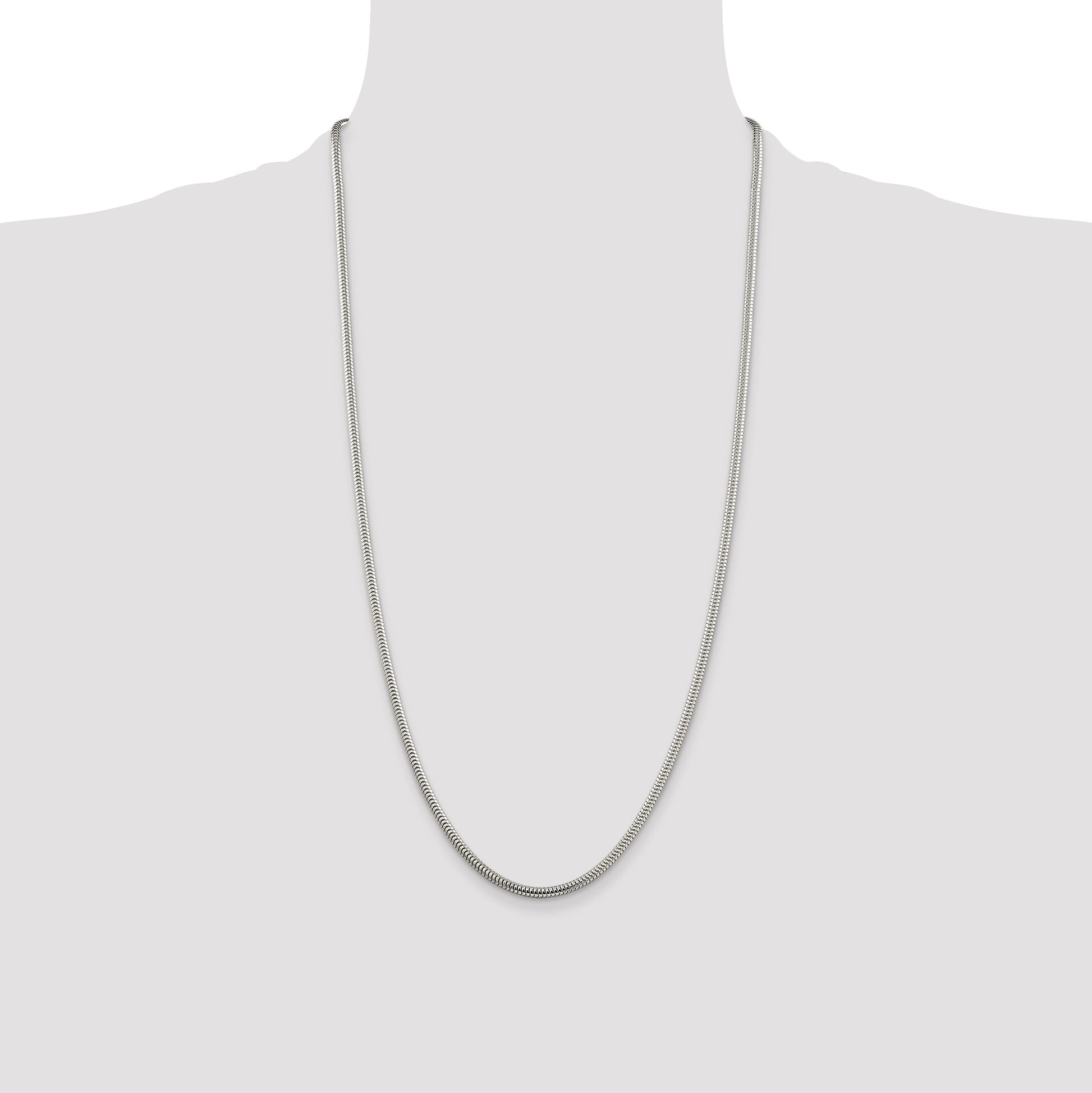 The 28-inch Sterling Silver 3mm Round Snake Chain is a stylish accessory for any jewelry lover. Its polished finish and anti-tarnish coating promise long-lasting shine. Made from 925 sterling silver, this smooth and solid chain offers a luxurious feel. Its round profile and 3mm width make it a versatile choice for daily wear or special occasions. A secure lobster clasp ensures it stays in place throughout your day. Whether worn alone or with a pendant, the 28-inch Sterling Silver 3mm Round Snake Chain adds a touch of elegance to any outfit.