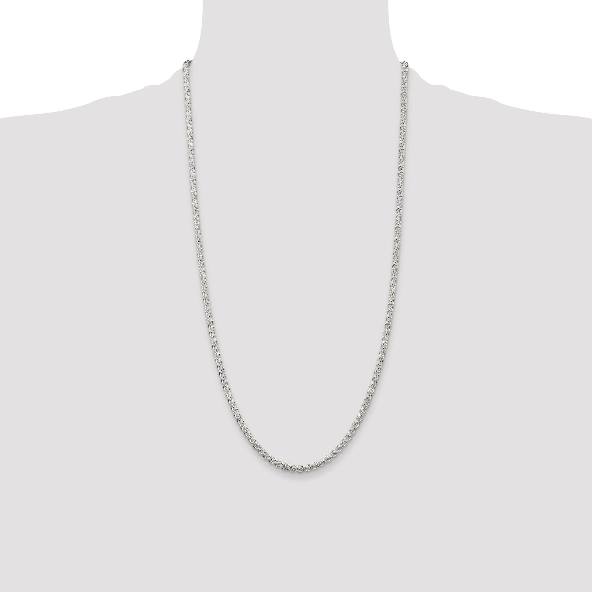 Introducing the 28-Inch Sterling Silver 3mm Round Spiga Chain, a blend of elegance and simplicity perfect for any woman's jewelry collection. Crafted from high-quality 925 sterling silver, this necklace dazzles with its polished finish and anti-tarnish protection, ensuring lasting shine. The sleek 3mm width and intricate Spiga, or wheat, design adds a touch of sophistication to this solid piece. Secure it comfortably with its convenient lobster clasp. Ideal for daily wear or special occasions, the 28-Inch Sterling Silver 3mm Round Spiga Chain effortlessly elevates any outfit.