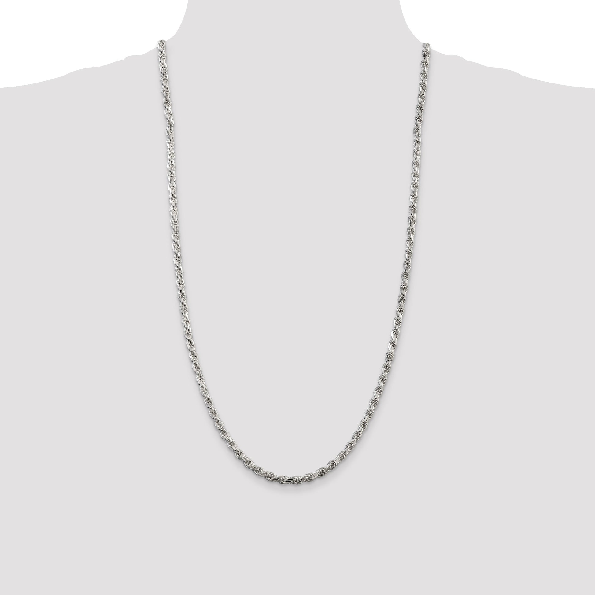 The 28-inch Sterling Silver Diamond-Cut Rope Chain exudes elegance and sophistication. Crafted from high-quality 925 sterling silver, this necklace boasts a polished finish that catches the light beautifully. The 4.25 mm width provides a sturdy yet sleek profile, perfect for any occasion. Its diamond-cut texture adds a dazzling touch, enhancing the chain's natural brilliance. Designed with a lobster clasp, it stays secure for all-day wear. An anti-tarnish coating ensures lasting shine and durability. The 28-inch Sterling Silver Diamond-Cut Rope Chain makes a striking addition to any jewelry collection, guaranteed to elevate your style.
