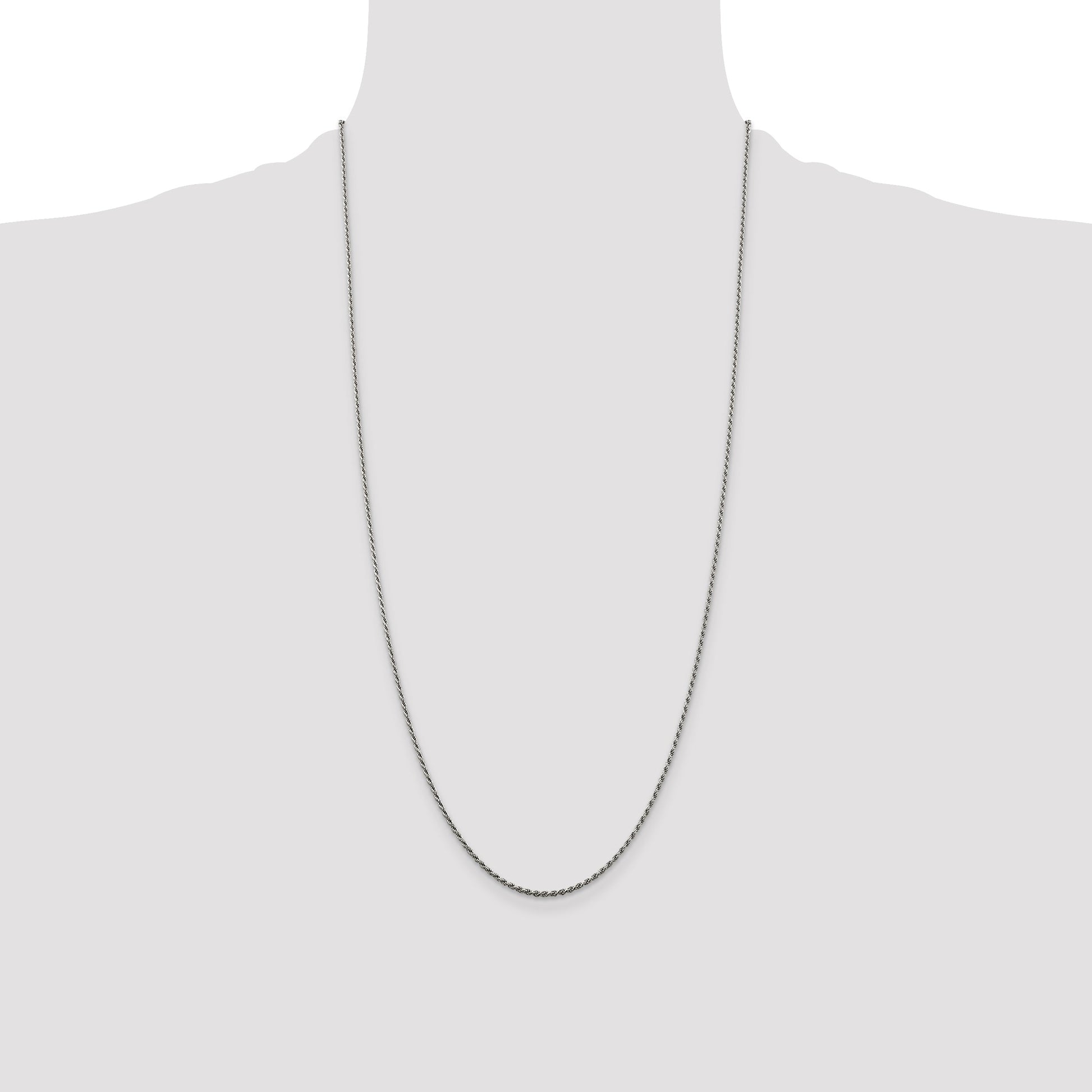 The 28 Inch Sterling Silver Rhodium-Plated 1.5mm Diamond-Cut Rope Chain beautifully encapsulates timeless elegance. Crafted from 925 sterling silver, this chain displays a dazzling rhodium finish that resists tarnishing. The diamond-cut texture enhances its sparkle, catching the light with every move. Measuring 28 inches in length and 1.5mm in width, it lies comfortably around the neck, making it perfect for layering or stand-alone wear. A solid lobster clasp ensures a secure fit, while its machine-made precision guarantees lasting durability. Choose the 28 Inch Sterling Silver Rhodium-Plated 1.5mm Diamond-Cut Rope Chain for a touch of sophistication in any outfit.