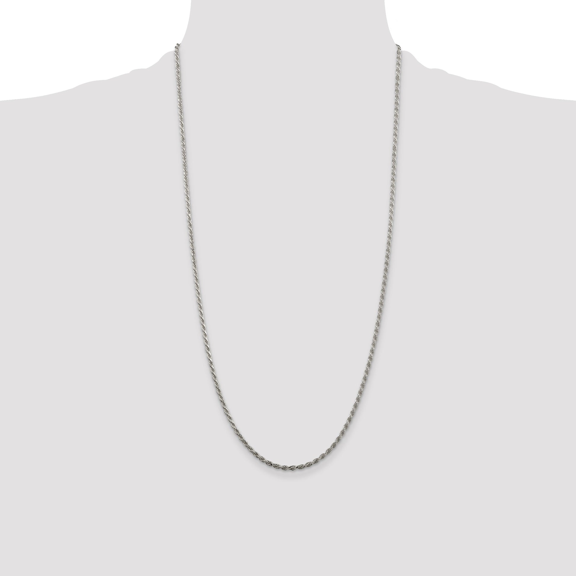 Elevate your style with the 28 Inch Sterling Silver Rhodium-Plated 2.25mm Diamond-Cut Rope Chain, perfect for any occasion. Crafted from pure 925 sterling silver, this polished masterpiece showcases a solid build and dazzling diamond-cut texture. The rope chain design adds a classic touch, while the rhodium plating provides a lustrous silver tone that resists tarnishing. A secure lobster clasp ensures a snug fit that stays in place. Ideal for both everyday wear and special events, the 28 Inch Sterling Silver Rhodium-Plated 2.25mm Diamond-Cut Rope Chain is a must-have addition to your jewelry collection.
