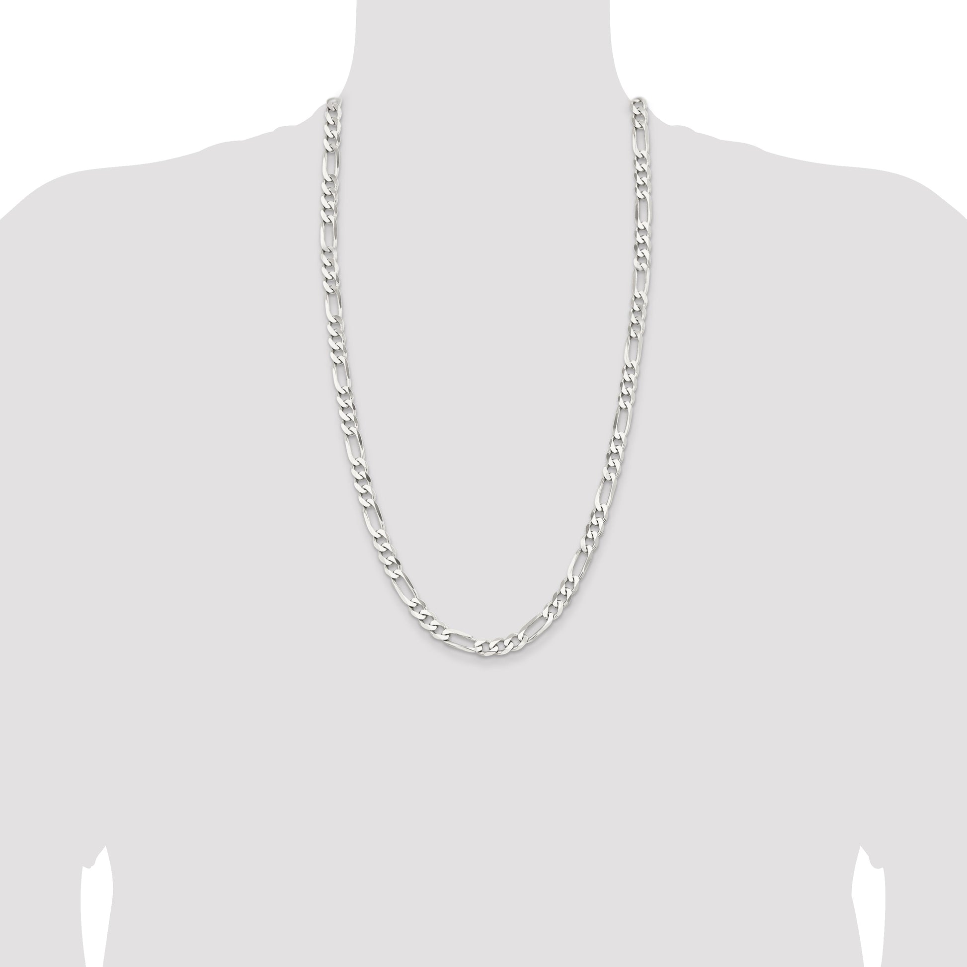 The 28 Inch Sterling Silver Rhodium-Plated 7.5mm Figaro Chain is a stunning piece of fine jewelry that adds a touch of elegance to any outfit. Crafted from 925 sterling silver, this chain boasts a polished finish that shimmers beautifully. Its Figaro design features a stylish 7.5mm width, offering a bold yet classic look. The reliable lobster clasp ensures secure wear, providing peace of mind whether it's for everyday use or special occasions. Designed for men, this piece's rhodium plating gives it a durable, brilliant silver tone. Elevate your style with the 28 Inch Sterling Silver Rhodium-Plated 7.5mm Figaro Chain.