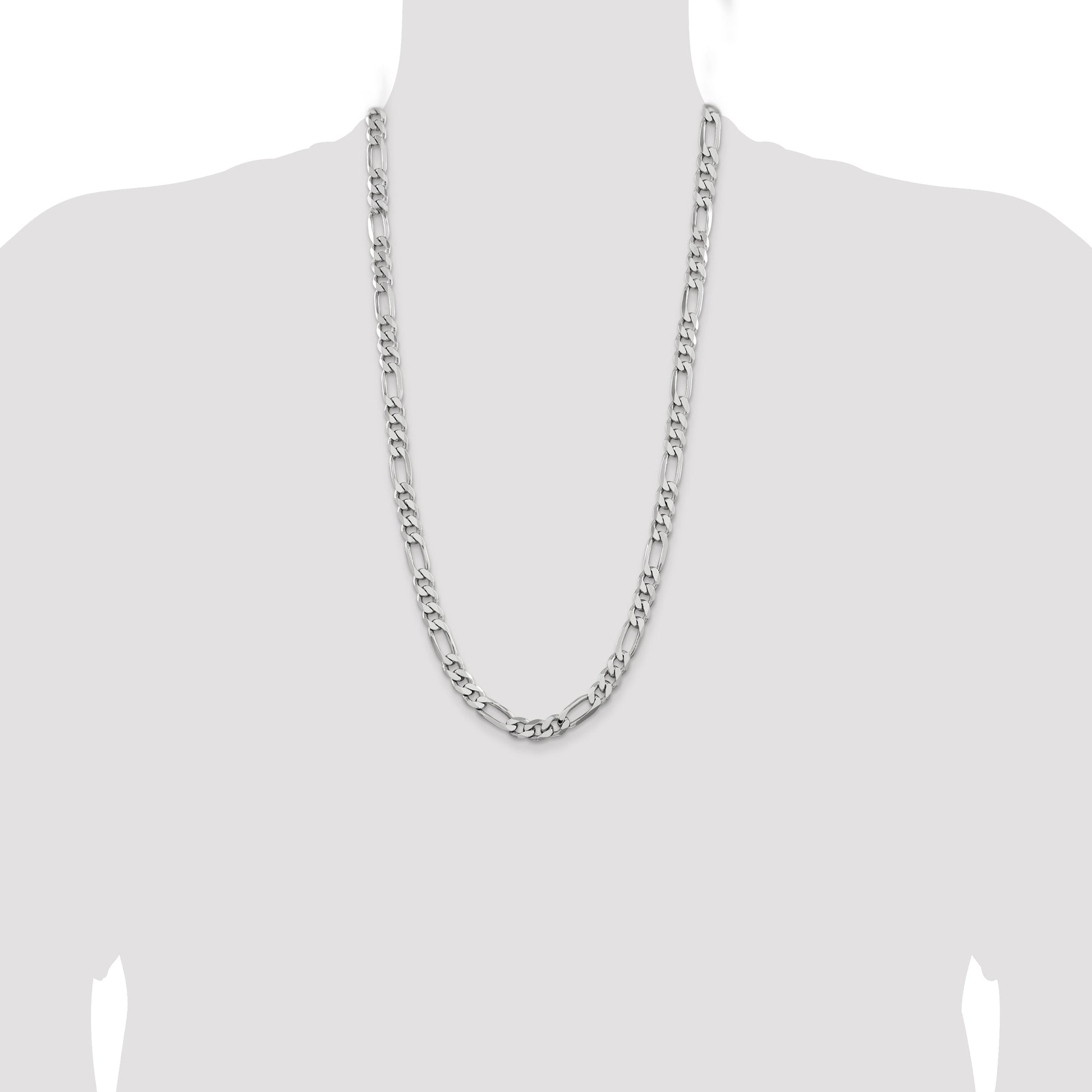 The 28 Inch Sterling Silver Rhodium-Plated 7.75mm Figaro Chain is a staple for any modern man’s jewelry collection. Crafted from pure 925 sterling silver, this chain carries a radiant polish that amplifies its refined elegance. Its 28-inch length and bold 7.75mm width ensure it stands out, making a strong style statement. The Figaro chain style adds a twist of classic flair, while the rhodium plating offers an extra layer of shine and protection. Secure with a lobster clasp, this necklace balances durability and sophistication seamlessly. Experience timeless style with the 28 Inch Sterling Silver Rhodium-Plated 7.75mm Figaro Chain.