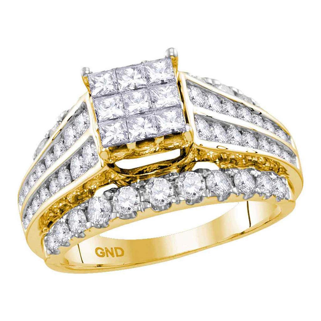 The 2CT-Diamond INVISIBLE BRIDAL SET is crafted from 14kt Yellow Gold and weighs approximately 8.2016 grams. With a total gemstone carat weight of 2, this set features three stunning diamonds. The primary diamond is a princess cut with a G-H color and I1 clarity, set invisibly with a weight of 0.54 carats. Two accompanying round diamonds, with G-H color and I1-I2 clarity, are channel-set and prong-set, respectively, with a combined weight of 1.47 carats. This bridal set exudes elegance and sophistication, making it the perfect choice for any special occasion.