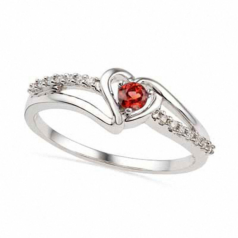 Elevate your jewelry collection with this exquisite 3.0mm Garnet and 1/20 CT. T.W. Diamond Heart Ring in Sterling Silver. Perfect for the January-born lady, this ring is a fantastic representation...