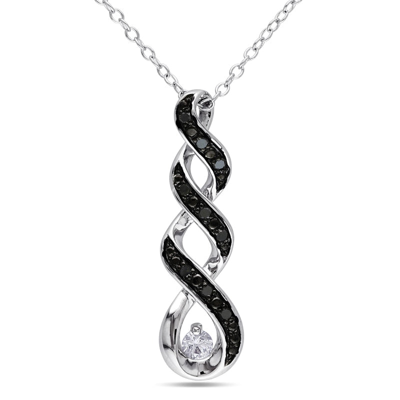 3.0mm Lab-Created White Sapphire and 0.1 CT. T.W. Enhanced Black Diamond Twist Pendant in Sterling Silver