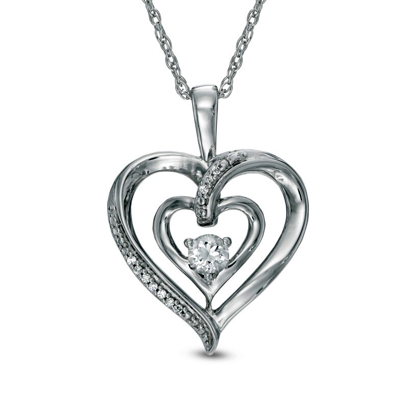 3.5mm Lab-Created White Sapphire and Diamond Accent Double Heart with MOM" Pendant in Sterling Silver"