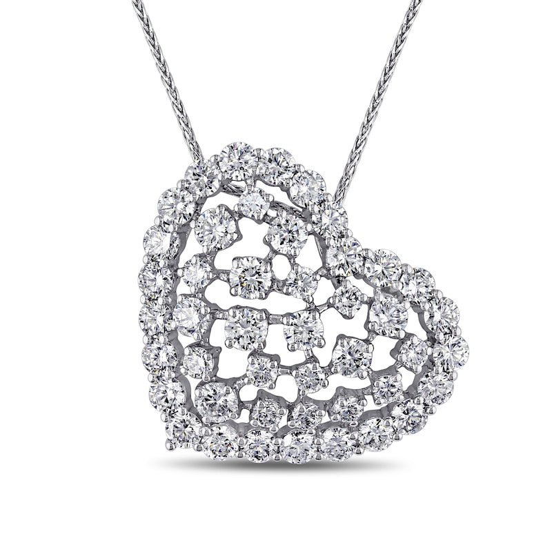 3 CT. T.W. Natural Diamond Scattered Tilted Heart Pendant in 14K White Gold (H/SI2)