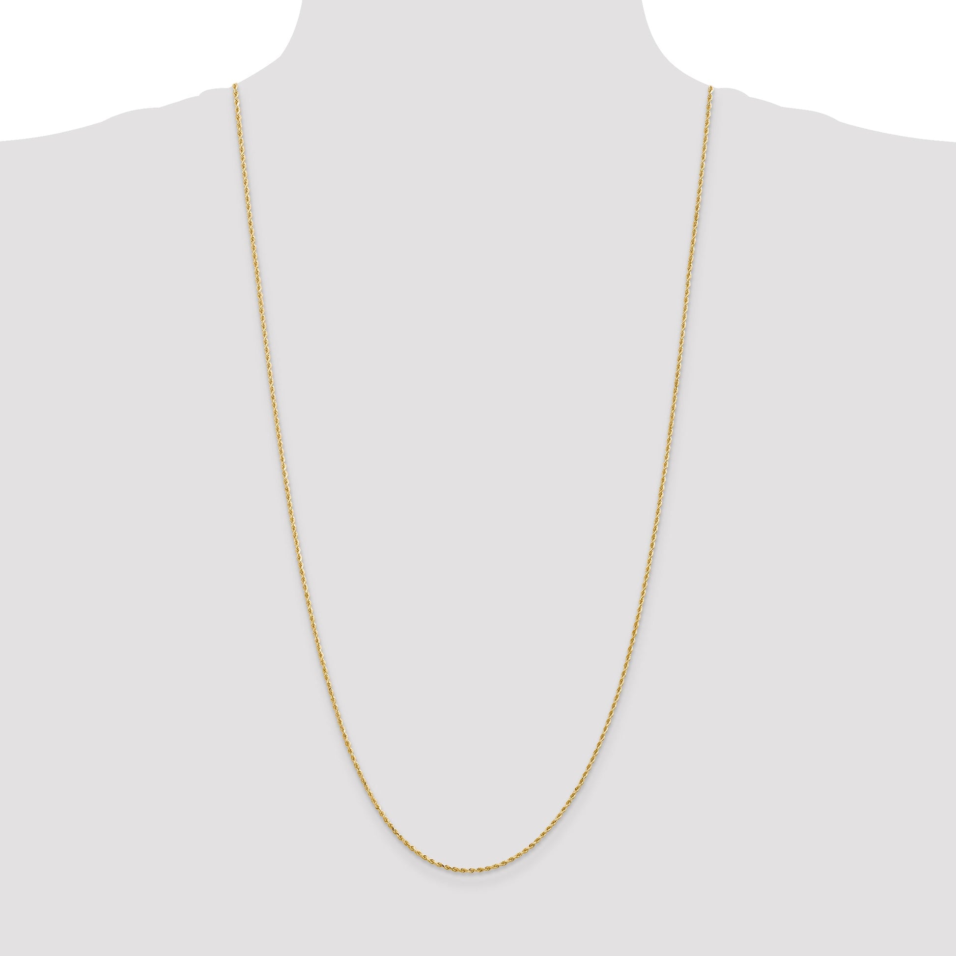 Introducing the 30 Inch 10K 1.5mm Diamond-Cut Rope Chain, a timeless piece that adds elegance to any outfit. Crafted from 10K yellow gold, this necklace boasts a polished finish and a stunning diamond-cut texture. The 30-inch length ensures a comfortable fit, while the solid rope chain provides durability and style. Its 1.5mm width and secure lobster clasp make it perfect for daily wear or special occasions. Each chain is hand-made to achieve the finest quality. Elevate your jewelry collection with the 30 Inch 10K 1.5mm Diamond-Cut Rope Chain.