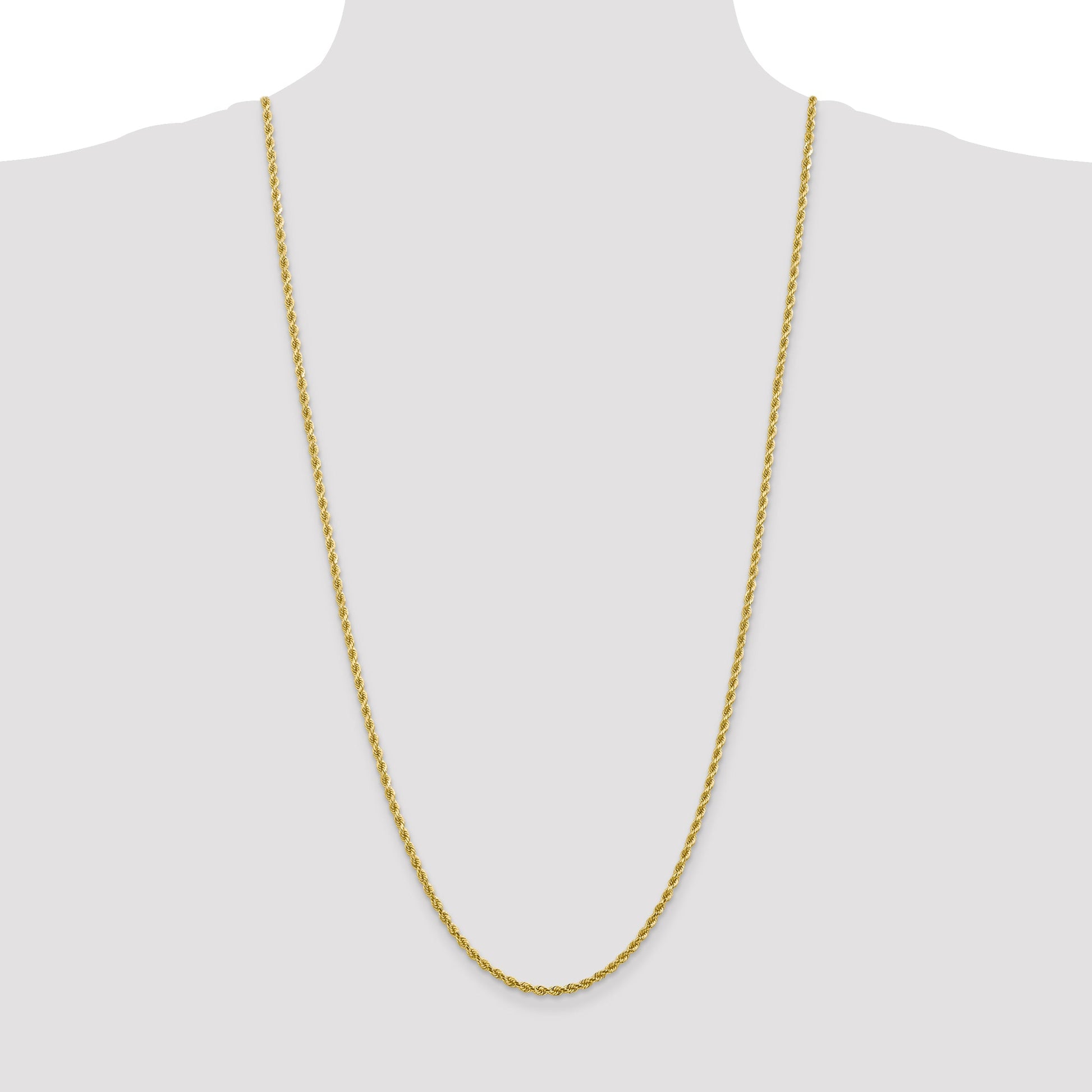 The 30 Inch 10K 2.75mm Diamond-Cut Rope Chain showcases timeless elegance and fine craftsmanship. Made from 10K yellow gold, this chain gleams with a polished finish and diamond-cut texture, adding a dazzling touch to any outfit. Its 30-inch length and 2.75mm width make it a versatile piece that can be worn alone or paired with a pendant. The solid construction and lobster clasp ensure durability and security. Handcrafted to perfection, the 30 Inch 10K 2.75mm Diamond-Cut Rope Chain is perfect for those seeking both style and substance.