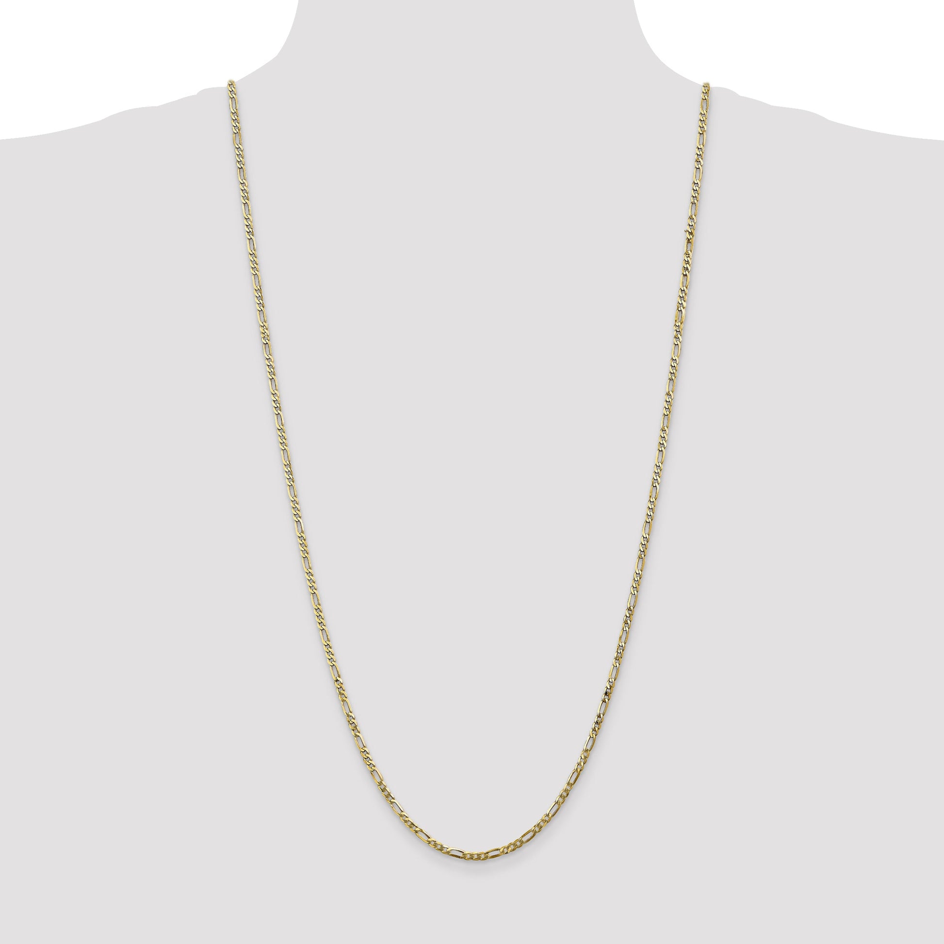 Discover the timeless elegance of the 30 Inch 10K 2.75mm Flat Figaro Chain. Crafted from pure 10K yellow gold, this polished, solid chain offers a sophisticated touch to any attire. Designed in the enduring Figaro style, its 2.75mm width strikes the perfect balance between subtlety and statement. With a durable lobster clasp, this machine-made necklace ensures both style and security. Perfect for layering or worn alone, the 30 Inch 10K 2.75mm Flat Figaro Chain promises to be a cherished addition to your jewelry collection.