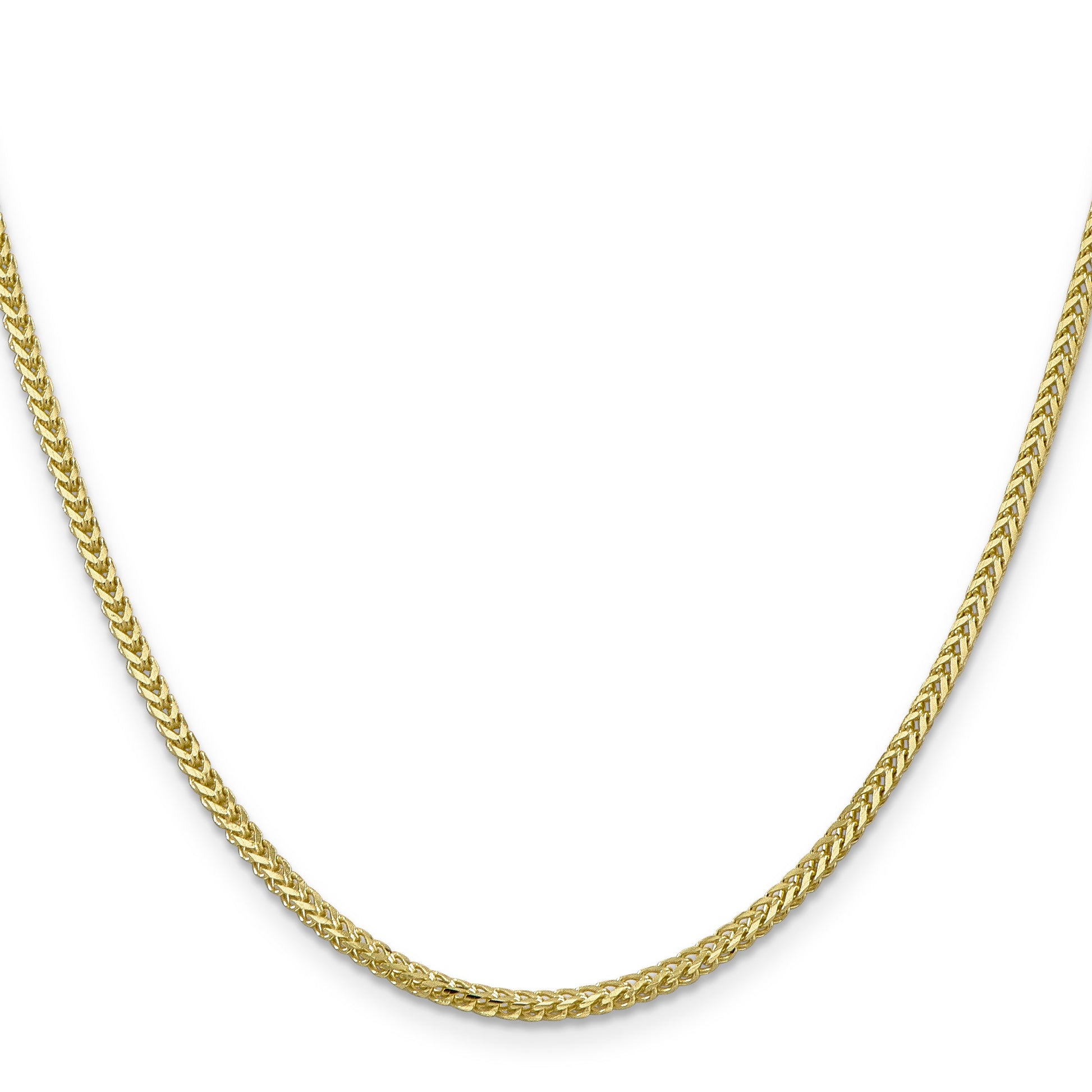 The 30 Inch 10K 2mm Franco Chain exudes elegance and timelessness. Crafted from lustrous 10K yellow gold, this solid chain flaunts a polished finish that shines brightly. At 30 inches long and 2mm wide, it makes a perfect statement piece for any occasion. The chain's Franco design and sturdy lobster clasp ensure both durability and style. Made with precision through die striking and extrusion, this fine jewelry piece promises both quality and beauty. Elevate your look with the 30 Inch 10K 2mm Franco Chain, a must-have addition to any jewelry collection.