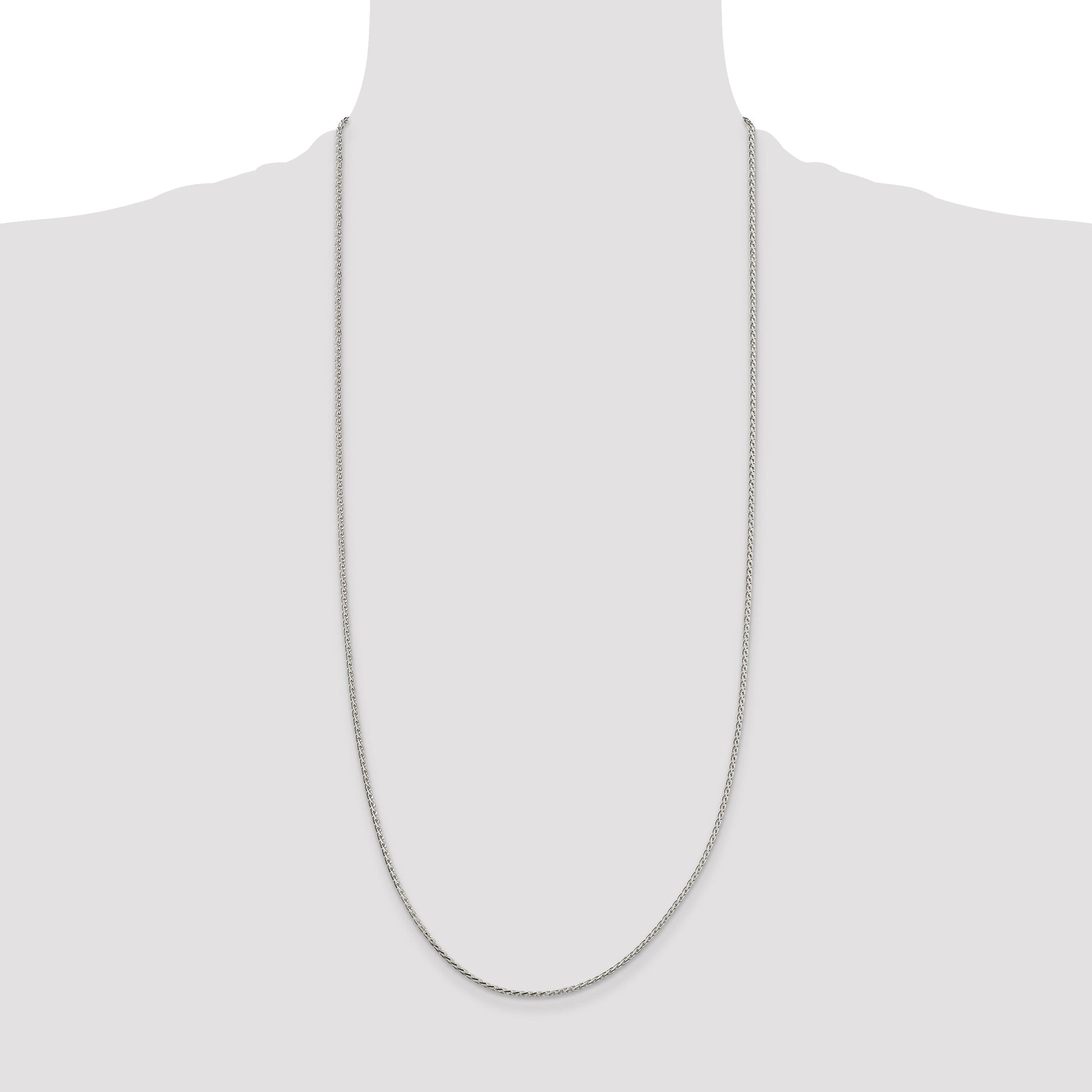 The 30 Inch Sterling Silver 1.7mm Diamond-Cut Round Spiga Chain promises elegance with its shimmering allure. Crafted from 925 Sterling Silver, this necklace showcases a polished finish that enhances its refined style. Its exquisite diamond-cut texture adds an eye-catching sparkle, while the 1.7mm width ensures durability without sacrificing grace. Designed as a Spiga or Wheat chain, its intricate weave adds sophistication to any outfit. A lobster clasp offers secure wearing, and an anti-tarnish coating helps maintain its shine. This necklace is machine-made, ensuring consistent quality. The 30 Inch Sterling Silver 1.7mm Diamond-Cut Round Spiga Chain is perfect for the modern woman seeking timeless jewelry.