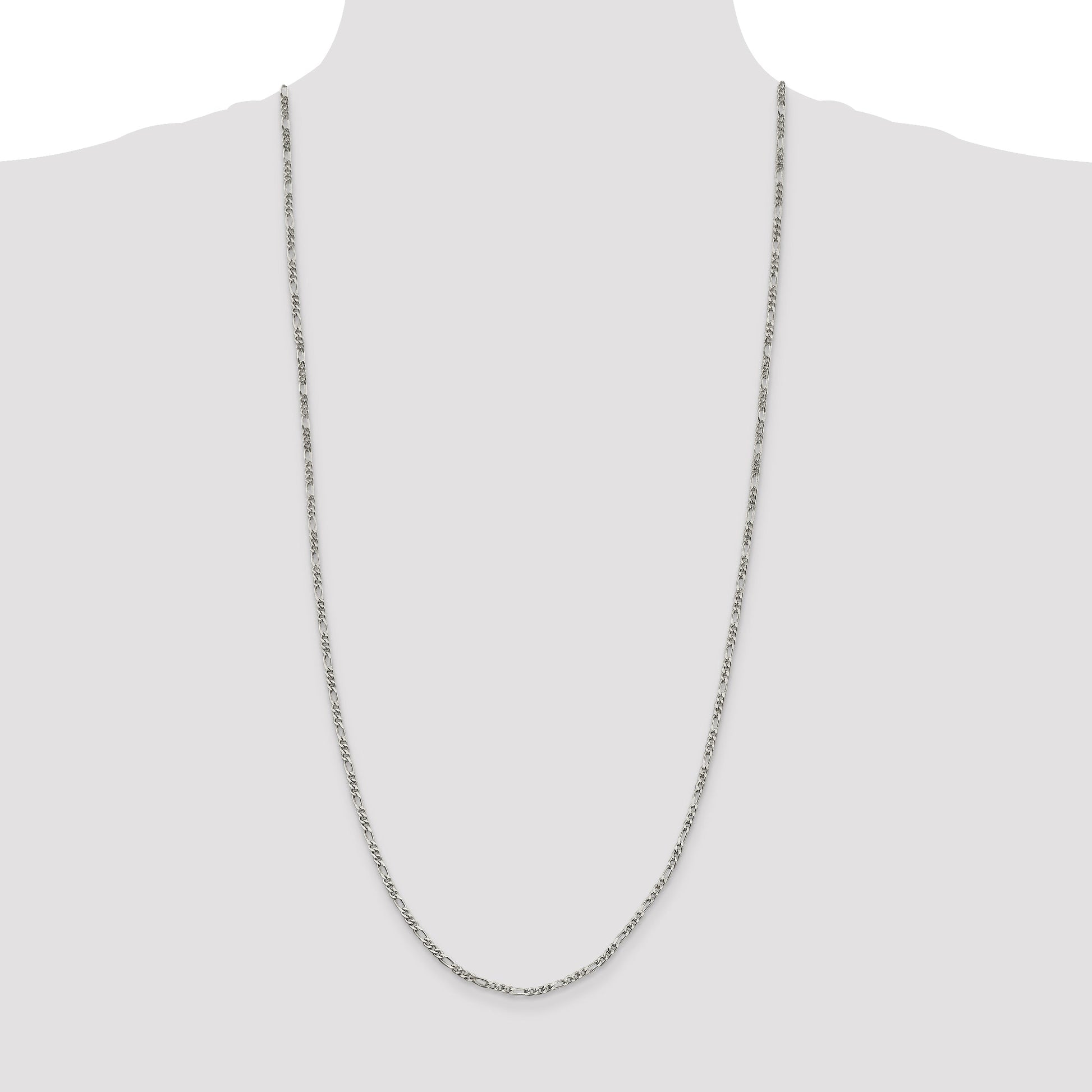 Elevate your style effortlessly with the 30 Inch Sterling Silver 2.5mm Figaro Chain. Crafted with 925 sterling silver, this polished chain shines with a sophisticated gleam. Its classic Figaro design, which alternates between short and long links, adds a touch of elegance to any ensemble. Measuring 30 inches, it drapes gracefully, making it perfect for layering or wearing solo. The sturdy lobster clasp ensures a secure fit. This women's necklace is an everyday accessory, exuding both charm and durability. Shine bright with the timeless allure of this 30 Inch Sterling Silver 2.5mm Figaro Chain.