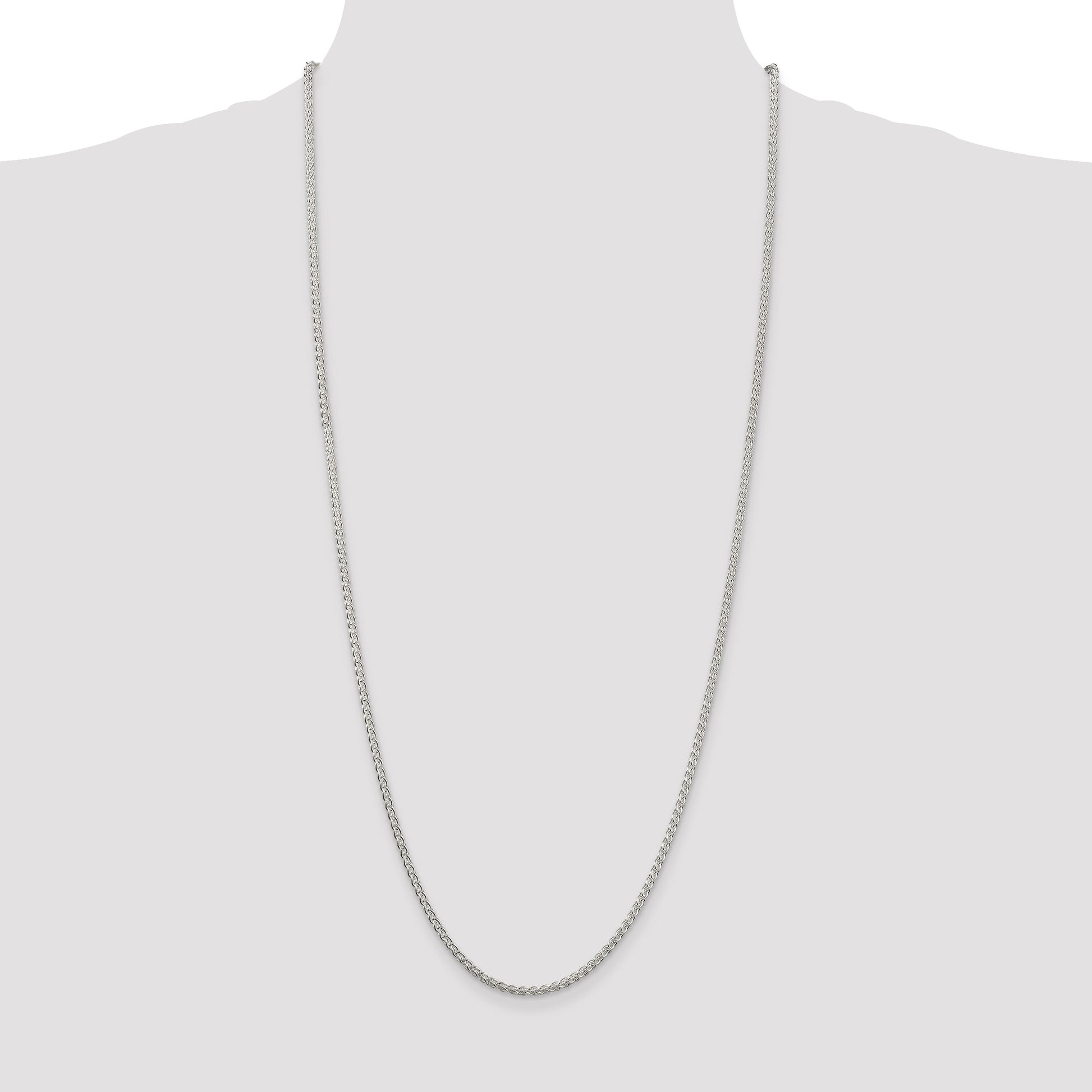 The 30-Inch Sterling Silver 2.5mm Round Spiga Chain is a stunning piece of jewelry that adds a touch of class to any outfit. Crafted from pure 925 sterling silver, this polished chain stands out with its elegant wheat or Spiga design. Measuring 30 inches, it's a perfect length for layering or wearing solo. With a width of 2.5mm, it offers a delicate yet noticeable presence. The anti-tarnish coating ensures lasting shine and durability. The lobster clasp guarantees secure wear. Experience the appeal of the 30-Inch Sterling Silver 2.5mm Round Spiga Chain for yourself.