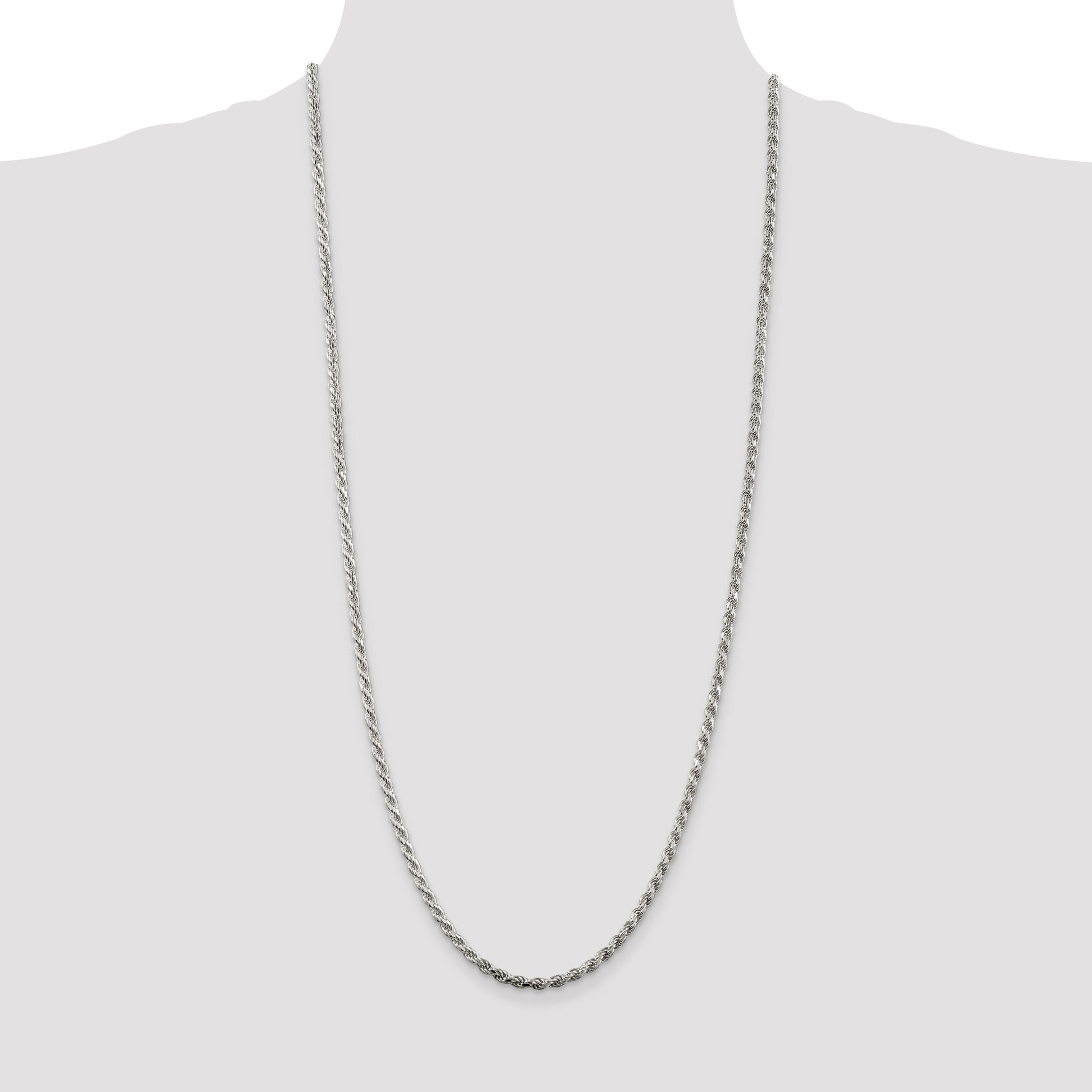 The 30 Inch Sterling Silver 3.2mm Diamond-Cut Rope Chain adds a touch of elegance to any outfit. Crafted from 925 sterling silver, this necklace boasts a polished finish and diamond-cut texture that sparkles with every movement. Its solid, casted form ensures durability, while the anti-tarnish coating keeps it looking new. The long 30-inch design provides versatility, perfect for layering or wearing solo. The 3.2mm width offers a bold, yet classic look, and the reliable lobster clasp ensures a secure fit. Experience timeless style with this Sterling Silver Rope Chain.