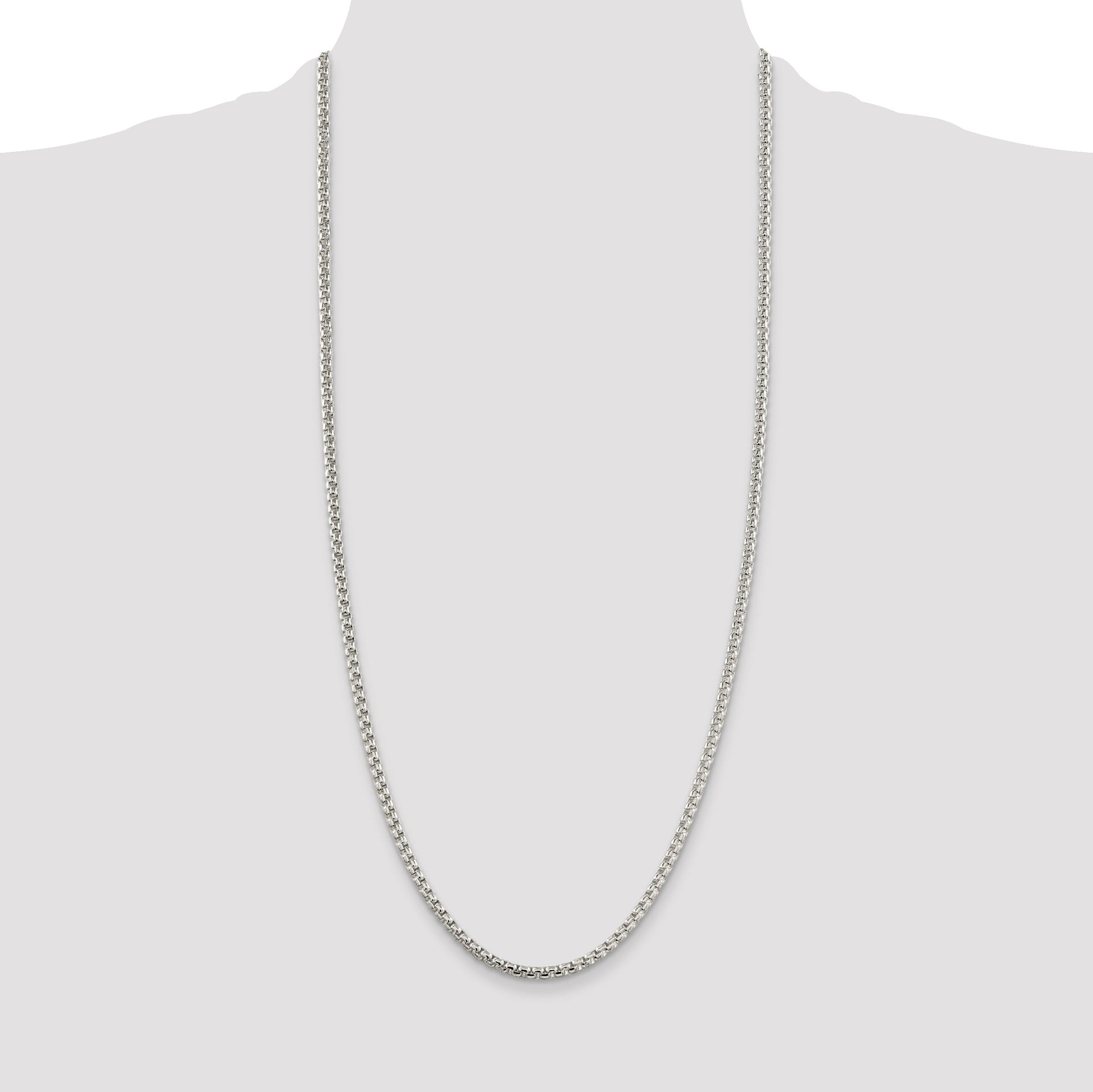 Introducing the 30 Inch Sterling Silver 3.6mm Round Box Chain, a stunning statement piece designed for elegance. Crafted from premium 925 sterling silver, this necklace promises a polished finish that captures light beautifully. Its 3.6mm width provides a substantial look without being too bold, making it perfect for any occasion. The 30-inch length sits gracefully on the chest, while the sturdy lobster clasp ensures secure fastening. Machine-made with a solid structure, it features an anti-tarnish coating for lasting shine. This round box chain necklace offers timeless style and sophistication for women who seek classic beauty.